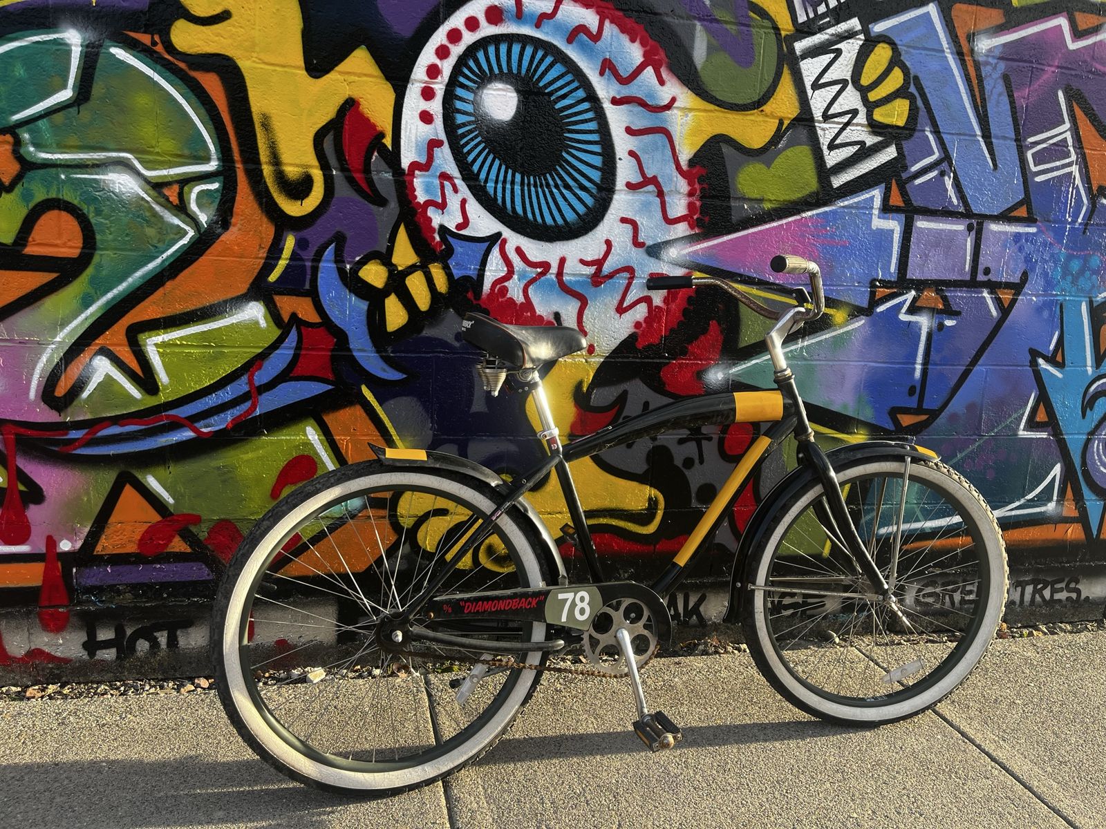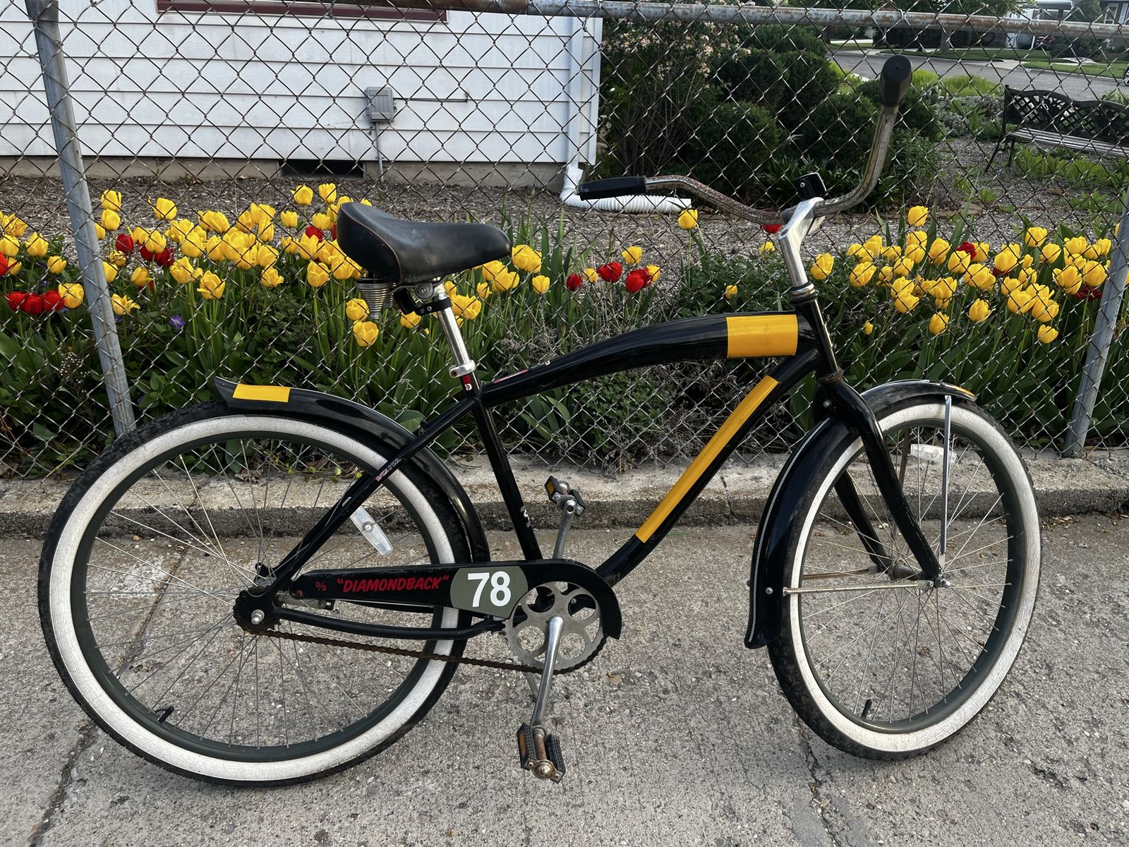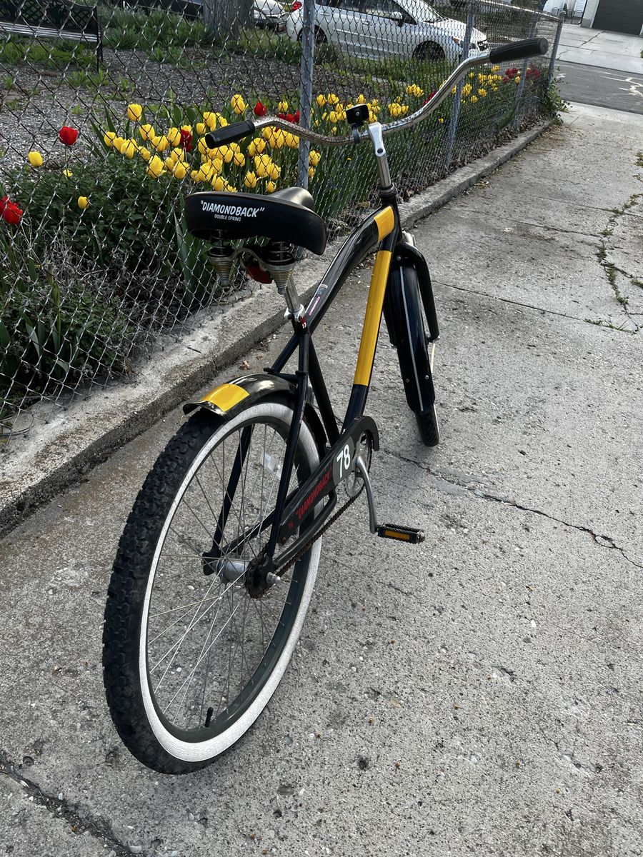 Sweet cruiser bike. Diamondback 78 cruiser. Has some awesome “crazy taxi” vibes to it. Has been in storage for a bit. Could use a polish and oiling. Took it around on the trail and it rides nice, tires hold air. Open to trades let me know. 75 obo make me an offer. Check out my other ads.