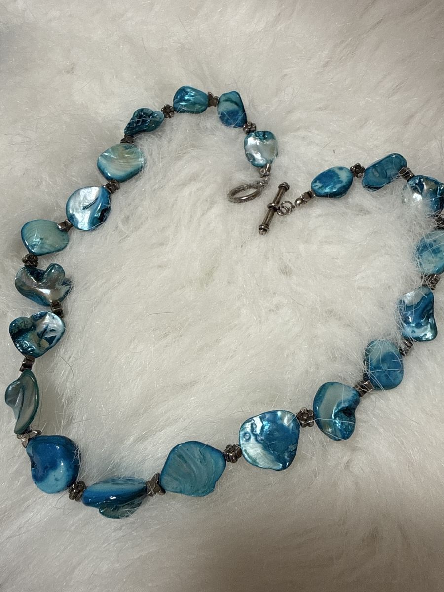 Really pretty turquoise colored shells or stone with silver beads & clasp. It’s beautiful but I don’t wear it much lately.,Cash only. Pick up in Orem.