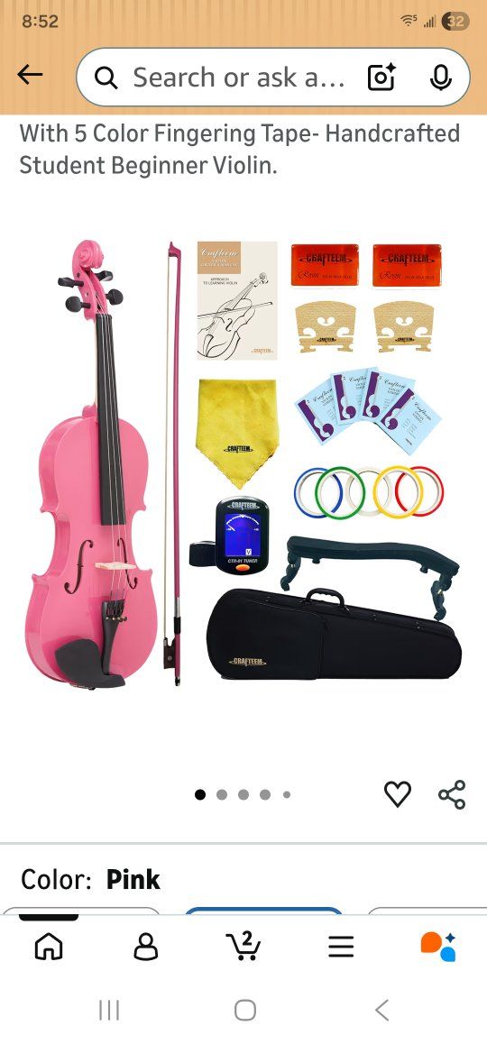 VenmoI have a new Crafteem violin size 1/2 great Beginner pink