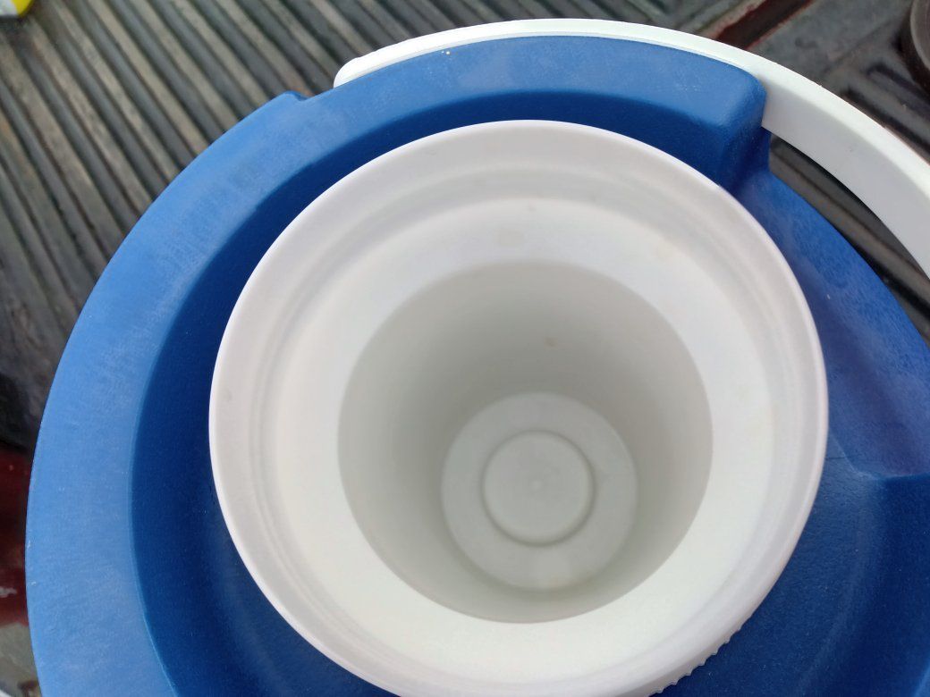 The tough one blue cooler holds about 2 gallons has a cup container in the top and the spout at the bottom. Excellent condition super clean like new. great for camping, parties, or family get together See pictures for details. $20
