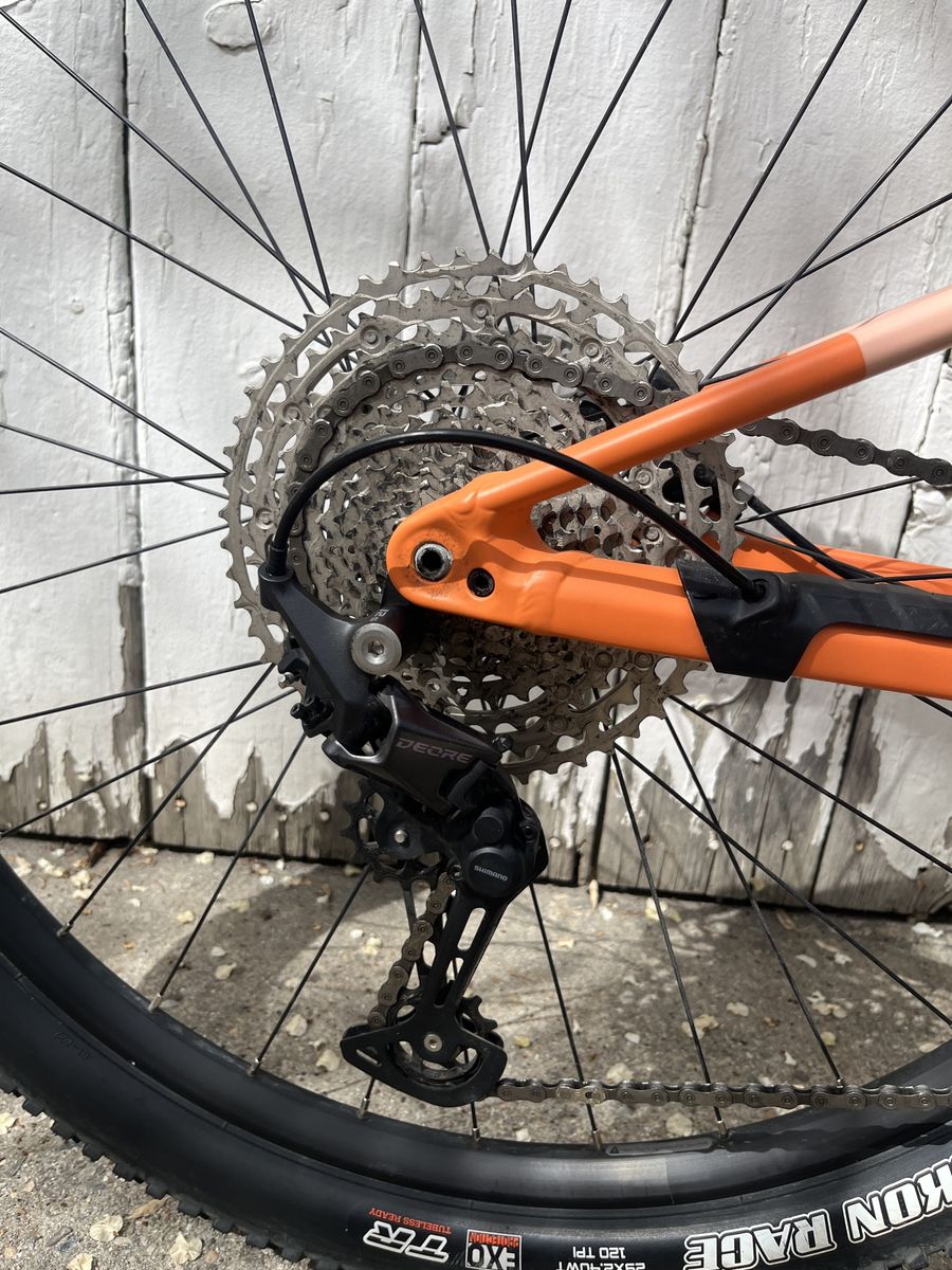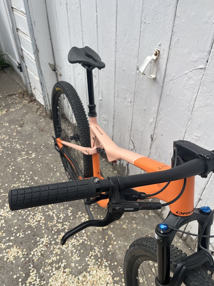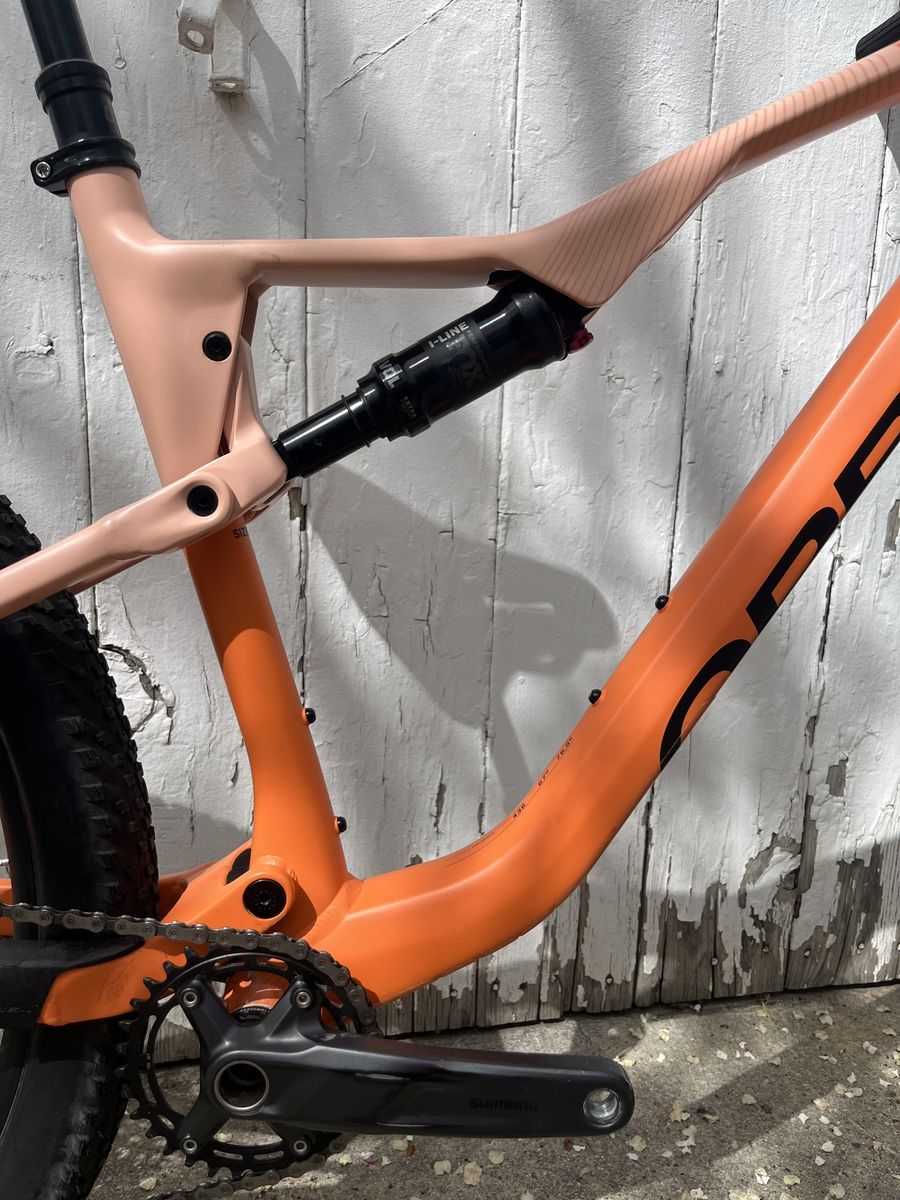 -Aluminum Frame, 120mm travel F/R -Shimano Deore 1x12 drivetrain -Shimano MT-201 2-piston hydraulic disc brakes -Aluminum Oquo (Orbea in-house brand) wheels, set up tubeless. -OneUp dropper post, 150mm travel. WolfTooth Remote -Aluminum bar/stem -32t chainring