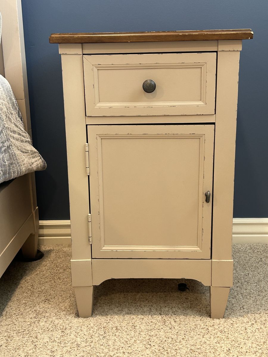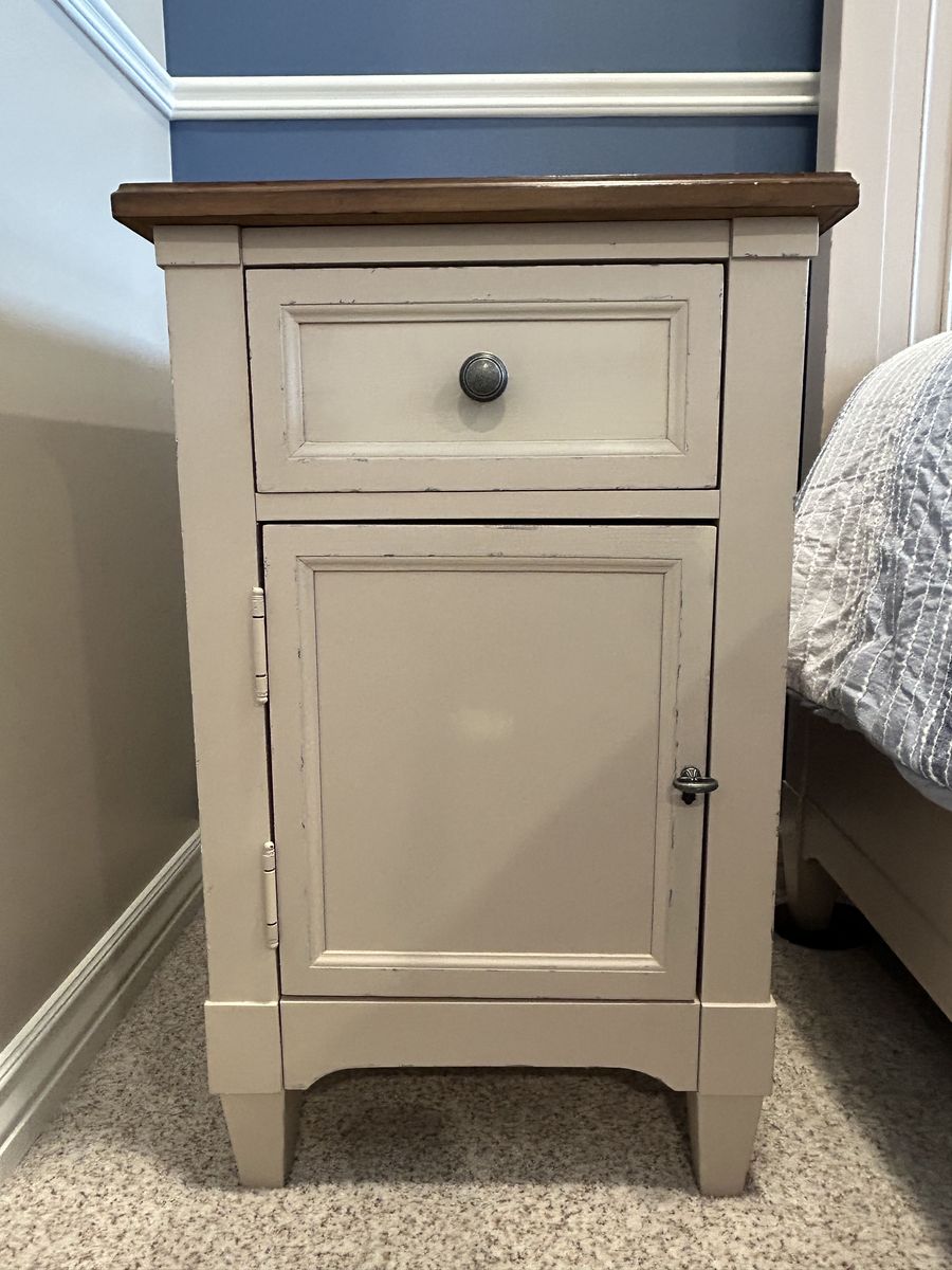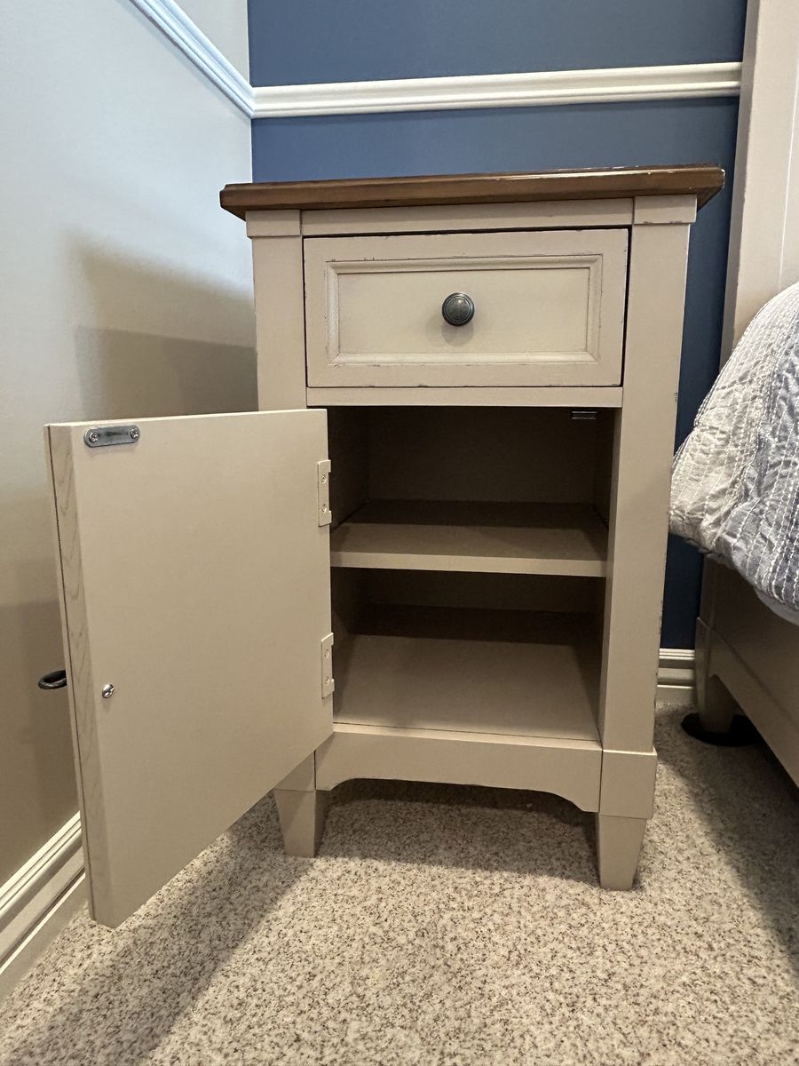 VenmoVaughan-Bassett bedroom set, including queen bed (no mattress) and two nightstands.