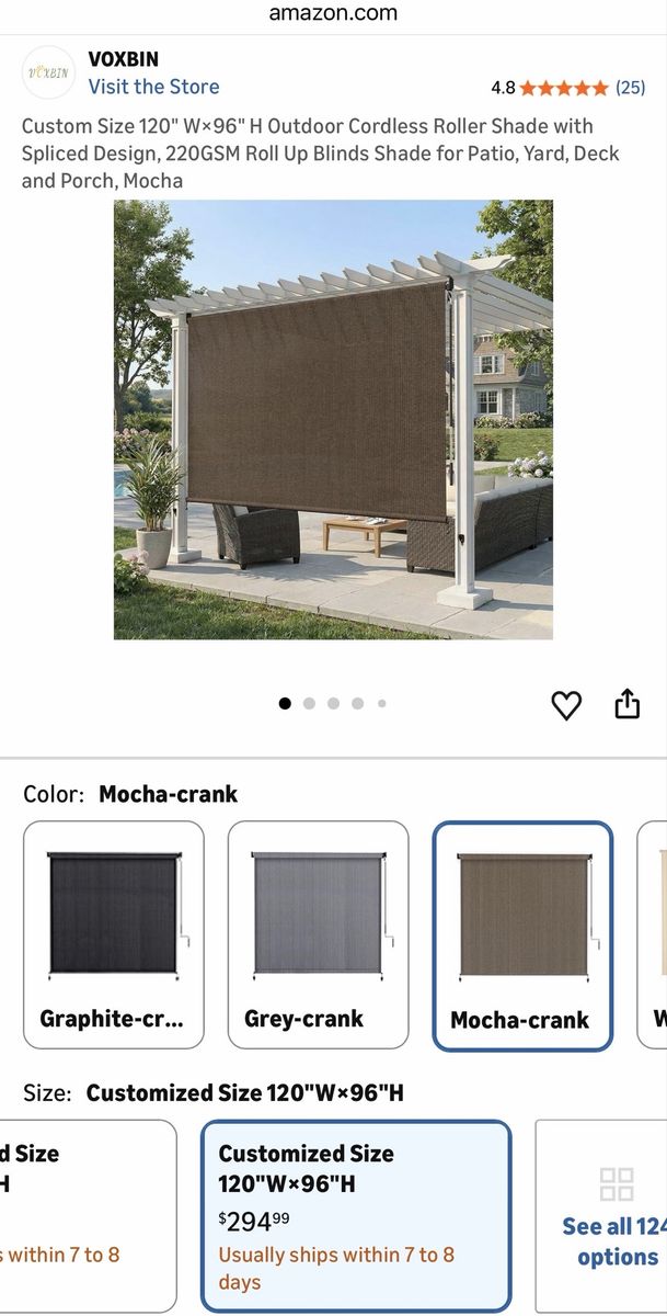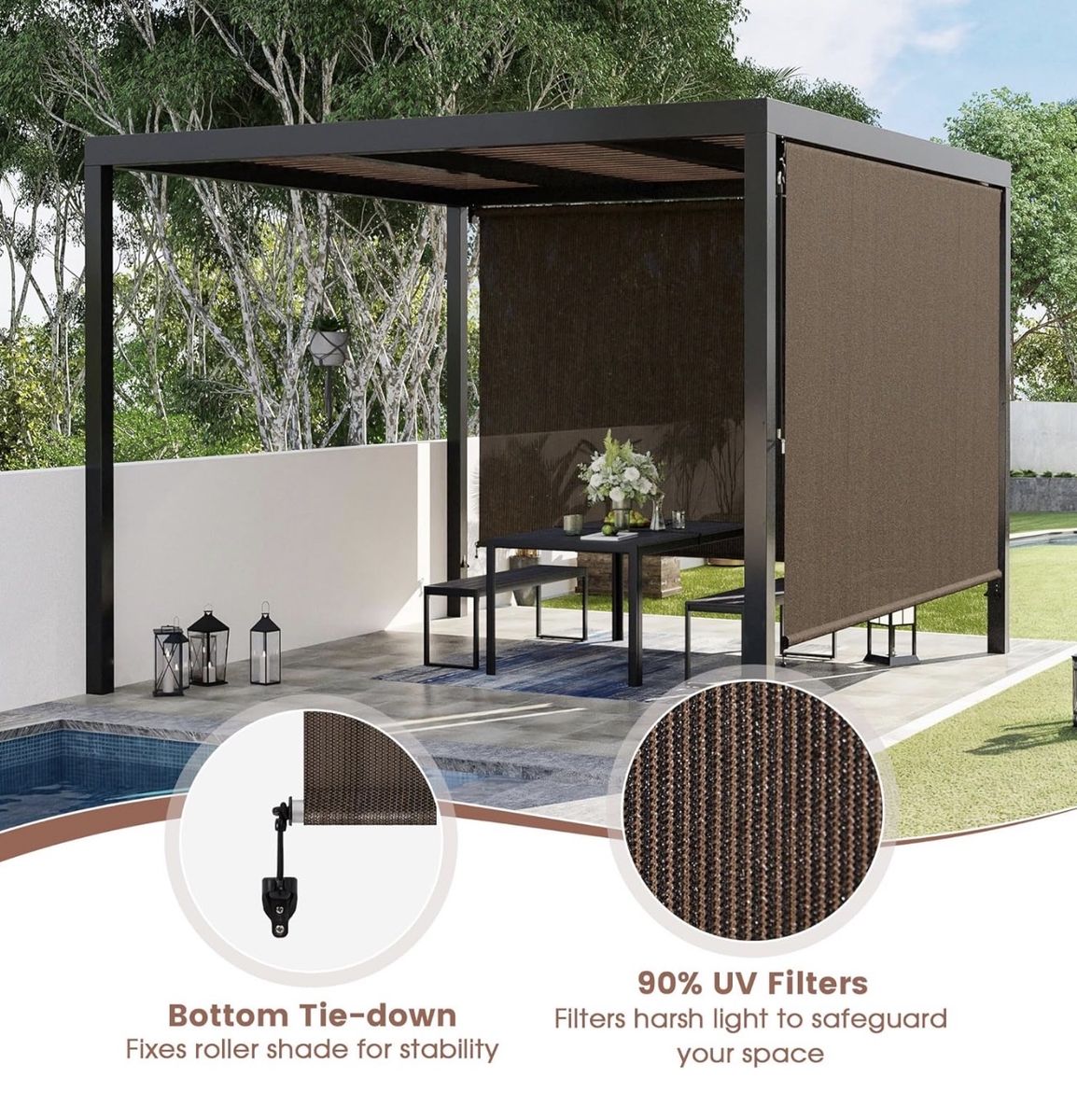New. 95% UV Block Roller Shade For Patio. 120"x96" For Patios, Perdolas