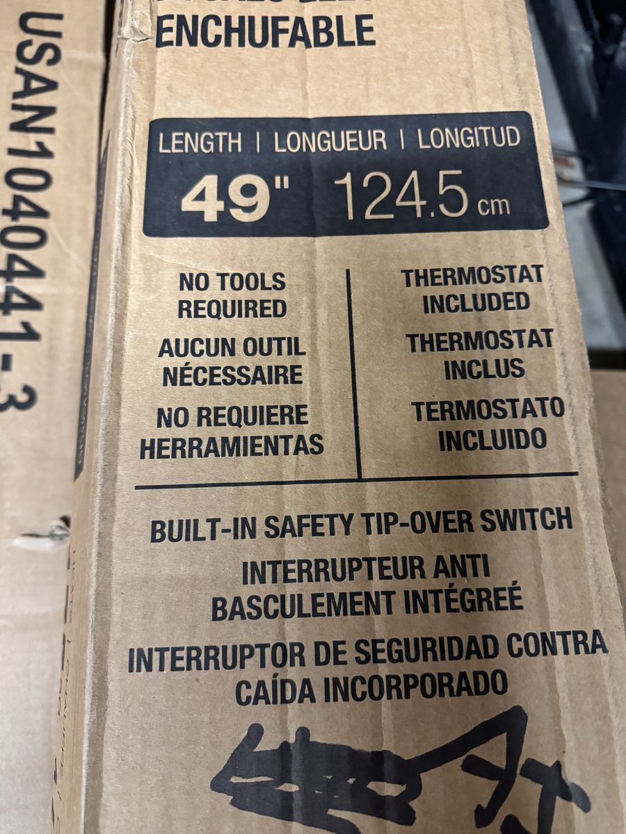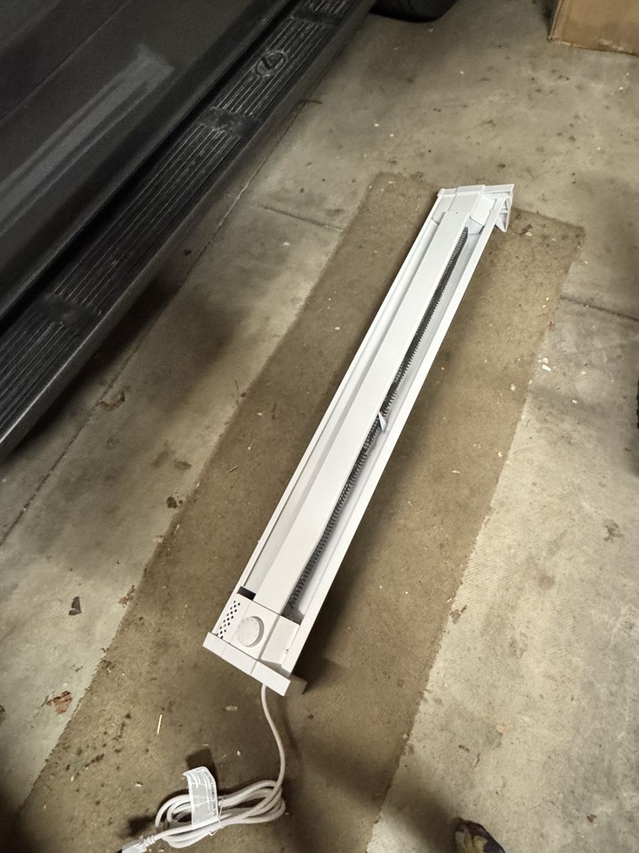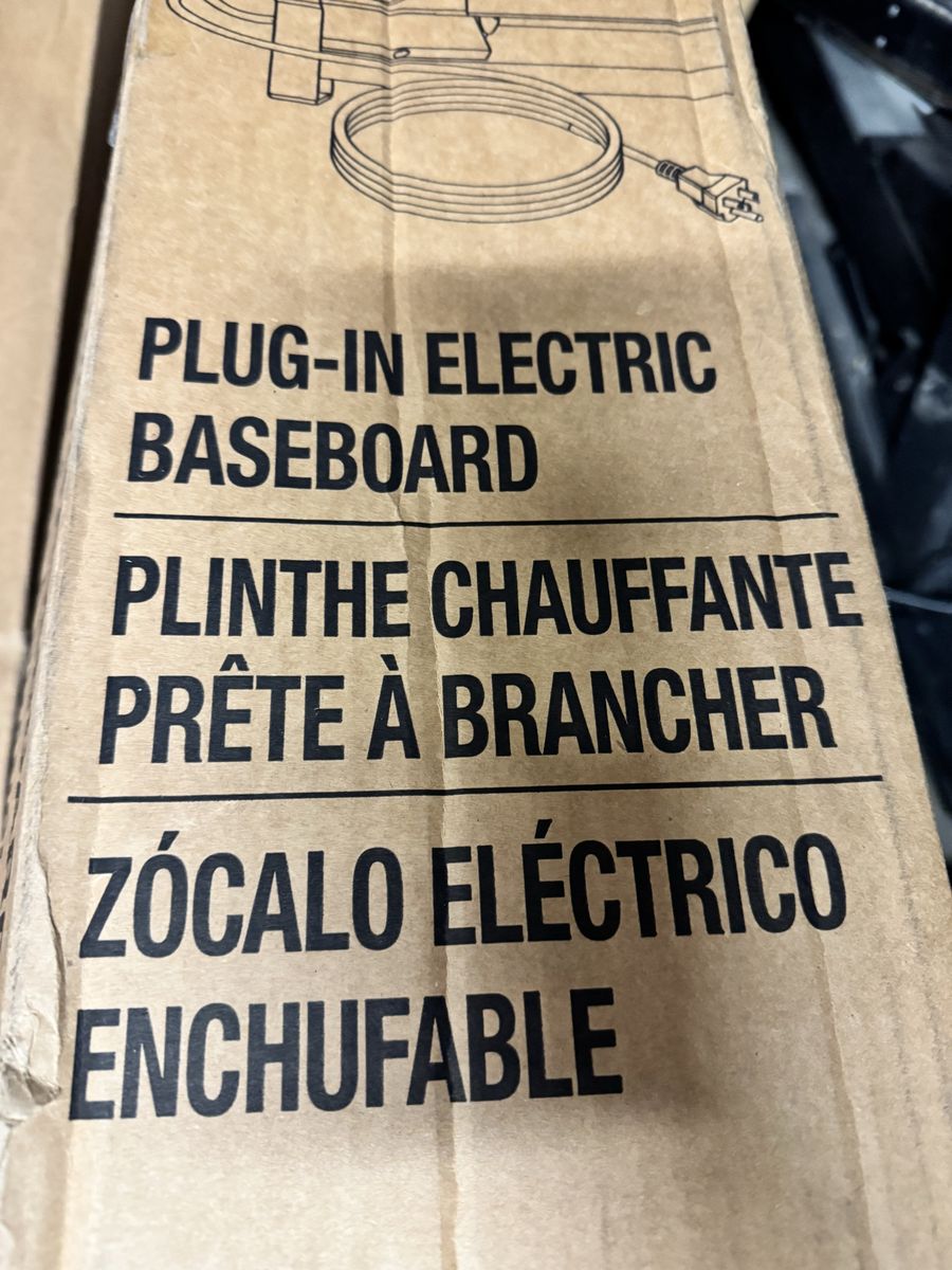 VenmoNew CADET portable electric baseboard heater. This one is 49 inches long and puts out 1500 watts, perfect for heating up to 175 square feet. It's 120V and has a thermostat built in. Comes with a 6-foot cord too. Super easy to just plug in and go!