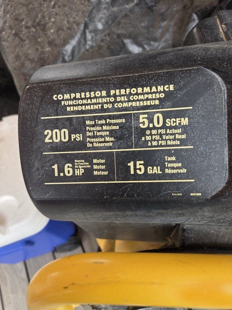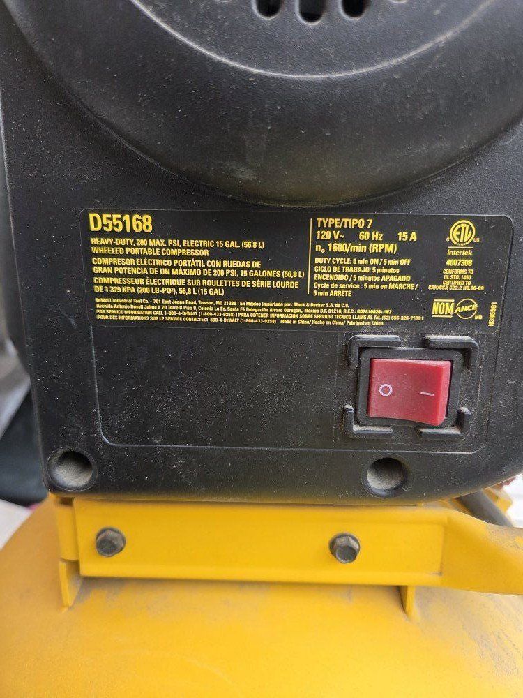 ZelleUsed Dewalt 15 gallon upright compressor.