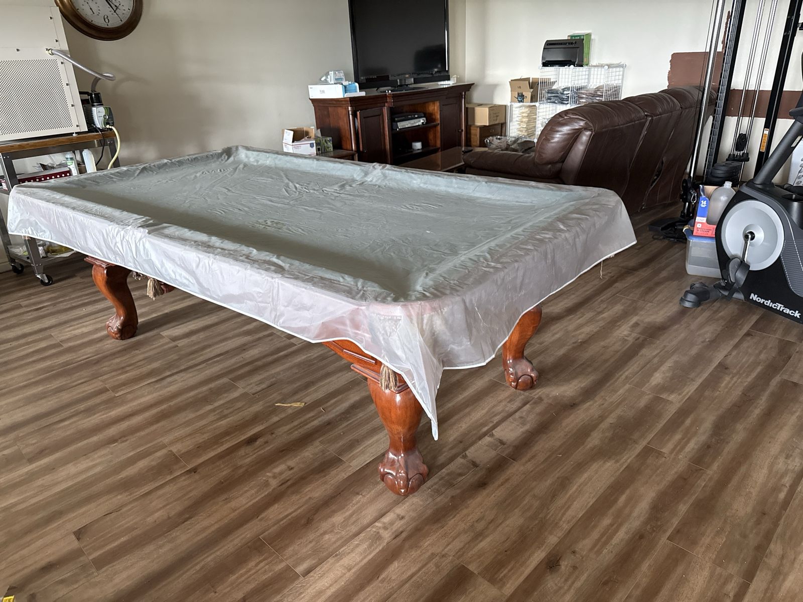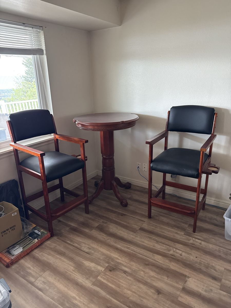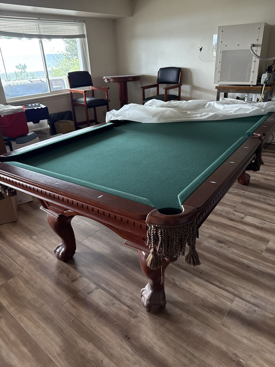PayPalFull size, high quality slate pool table with included pub-style chairs and table. Also wall mount for accessories, balls, racks and 6 cues included.