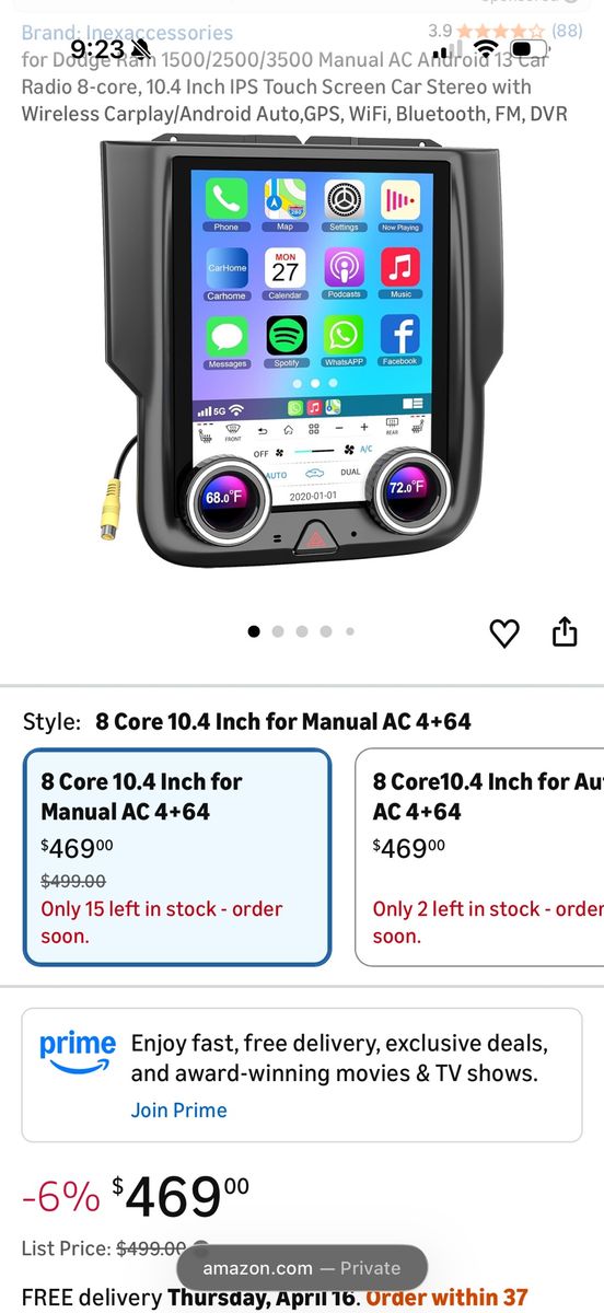 I bought this for my truck a while ago and I prefer the wrong one so I didn’t in stall it for the ram 1500 with smaller factory (example in photos)