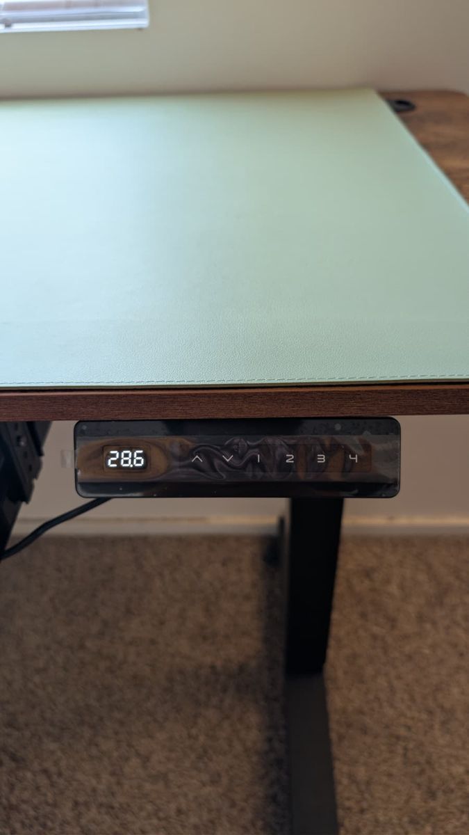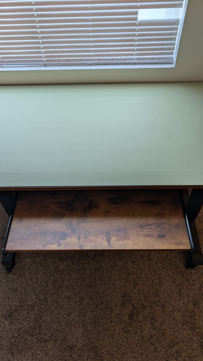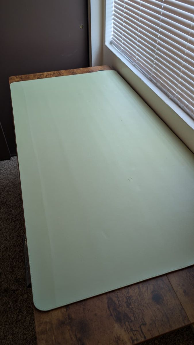 Has always been used with the leather mat. The desk also has wheels that can be locked.