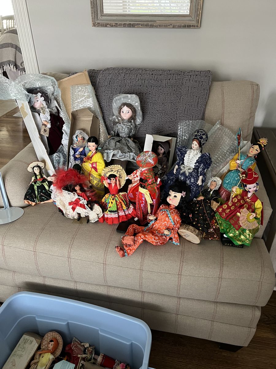 Dolls were from 1950's to 1970's. They are antique dolls from all different countries that I collected them when I was very young. As you can see how they were dress from different countries. I think I have about 30 or more dolls. They are clean and none smoking.
