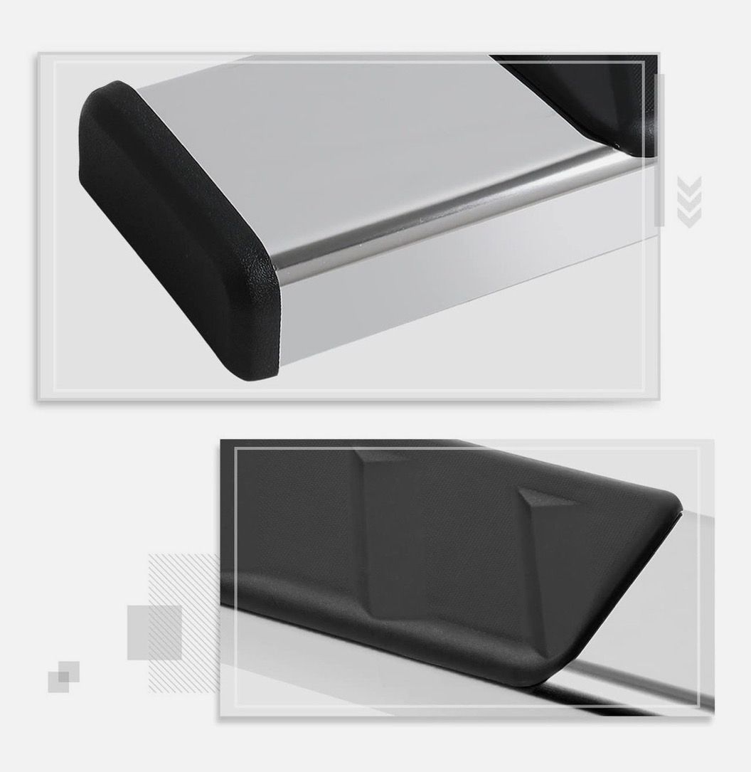 Built From Durable, Rust-Resistant, Stainless Steel; High Quality ABS Plastic Covered Slip-Resistant Step Pads,ABS Plastic End Caps Easy, No-Drill Installation Bolts Right To Factory Mounting Points In Less Than An Hour (Most Models);Vehicle Specific Mounting Brackets Included No Instruction Included. Highly Recommend Professional Installer for Installation