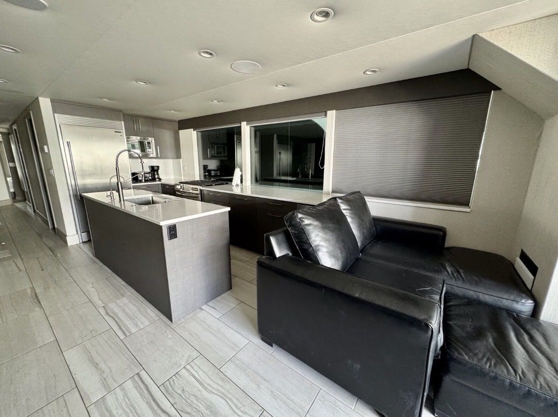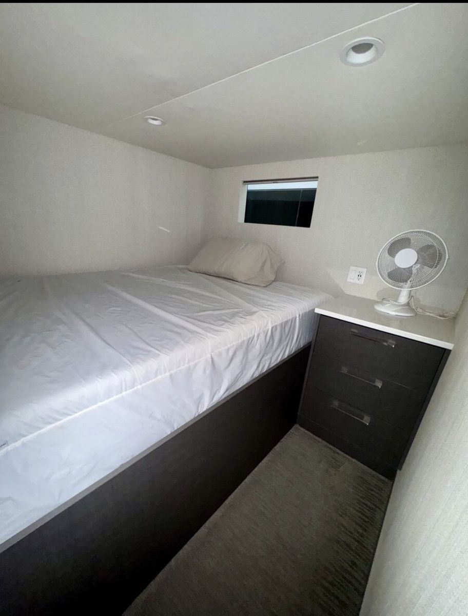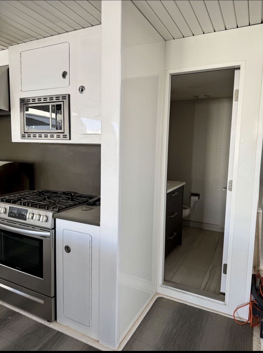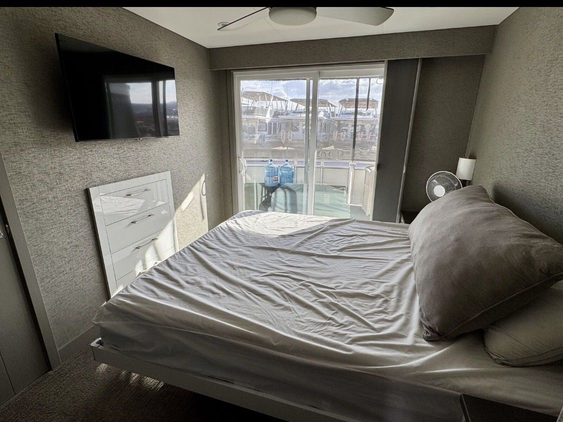 Sleeping Capacity: Easily sleeps 20 guests Rooms: 8 total Climate Control: Central air conditioning & heating Sleeping Accommodations 2 Private Primary Suites King-size beds Under-bed storage Full private bathrooms 2 Private Upper-Level Suites Queen-size beds 2 Private Cuddy Cabins Queen-size beds 2 Kid’s Cuddy Cabins Sunbrella padding TV/DVD combos Additional Sleeping (2) salon sofas (2) upper-deck sofas with 8 sleeping pads total Bathrooms Private bathrooms for both master suites Upper-deck bathroom pod with refrigerator/freezer & ice maker UVB fresh water processing system 780-gallon holding tank capacity Entertainment & Technology Custom ceiling drop-down 60” HD/LED TVs with surround sound in: Main salon Mid-deck entertainment lounge with custom sofa LED TV/DVD combos in both master suites Intellian in-motion, self-tracking satellite TV Complete electronic navigation system (2) ship-to-shore marine radios Backup cameras at both main and upper helms Deck & Outdoor Living Upper deck hardtop canopy with inset lighting Upper & lower safety rails with hard sides Upper-deck breakfast bar with: Sink Dishwasher Microwave Range (5) bar stools Outdoor patio & deck furnishings Front deck BBQ grill Rear deck slide with water pump Full 5-foot extended swim platform Custom water stairs Front & upper deck screening Galley & Interior Complete galley with service for 20 guests Custom cabinetry throughout Custom countertops in galley Coffee maker, toaster, blender & electric skillet Full-size stainless-steel range & oven Microwave & dishwasher 66” stainless steel refrigerator/freezer combo Commercial-grade ice maker Trash compactor Washer/dryer combo Custom upgraded finishes throughout the interior Mechanical & Power Engines: Twin Diesel Mercruiser 180 HP with Bravo II drives Generators: (2) Diesel generators – 25kW Fuel Capacity: 700 gallons diesel (main tanks) Toy tank with electric pump Battery System: 12V house system 4,000-watt inverter with easy-access hatch Safety & Systems Windlass anchoring system Anchors, lines, docking & mooring equipment Life jackets & full safety equipment Below-deck storage