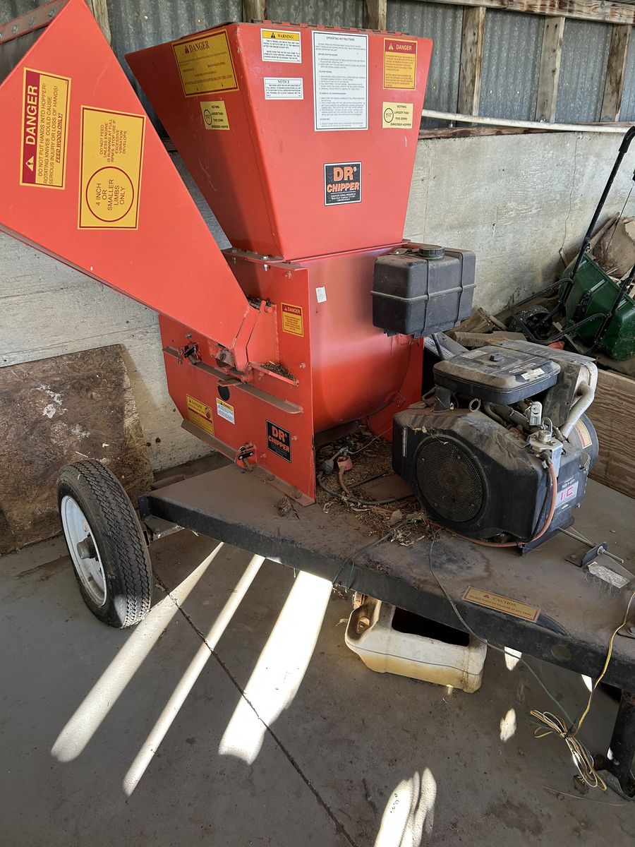 D R Chipper Used very little. Has an 18 horse Power twin Cylinder I/C engine (larger than the engines they now use ) has electric start, will accept 4 inch logs. am asking less than1/2 price from new $1500