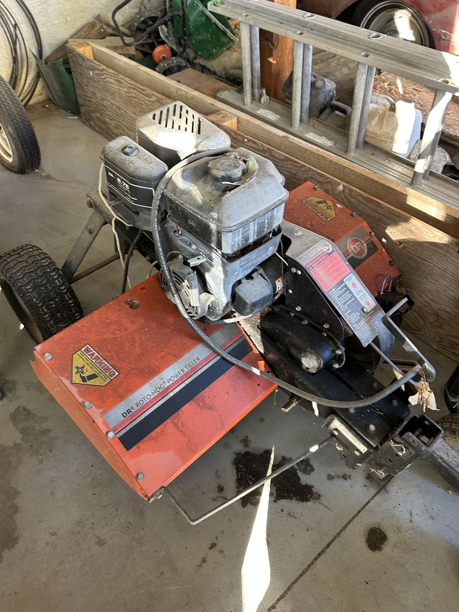 Also a D R Roto Hog pull behind rototiller has an 8.75 H P engine with electric start and power hight adjustment. Also half price from new $1600 Prices negotiable Items located in Honeyville, Utah