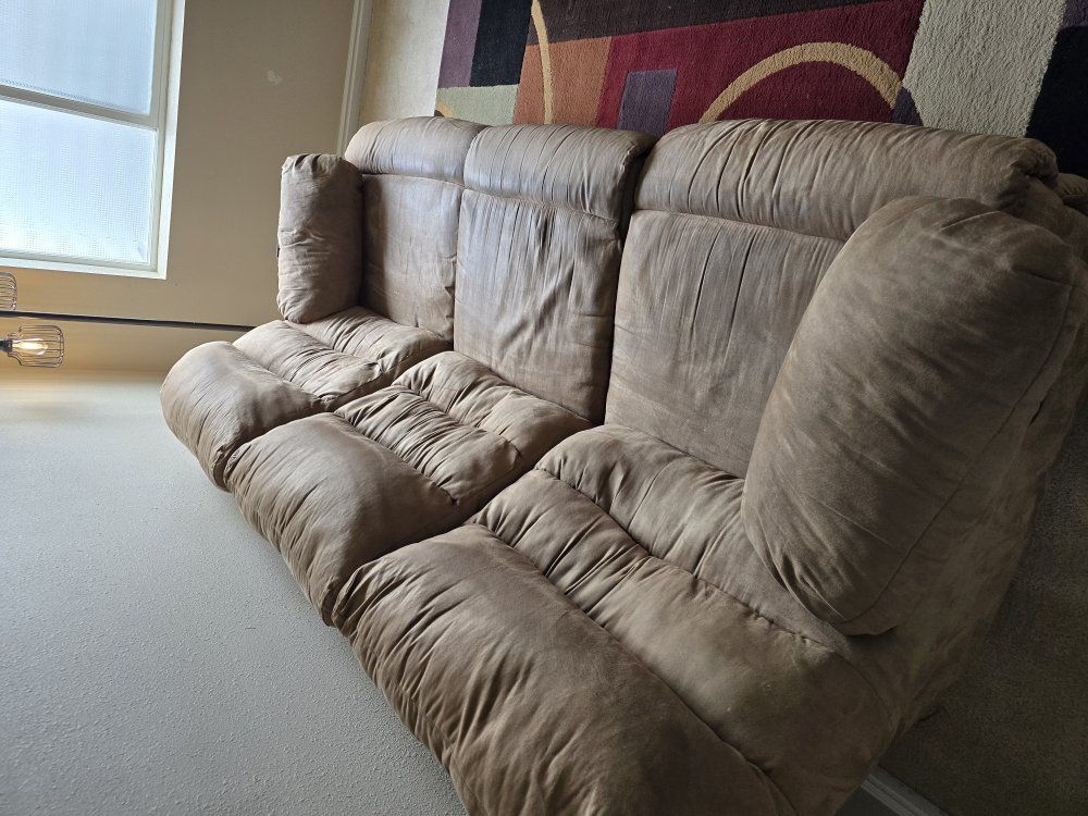 The couch comes in 3 separate pieces (two recliners and a middle seat), making it easy to disassemble and move. One person can handle it, as long as it fits in your vehicle (SUV, minivan, or pickup). I can help with loading, but I don’t have a vehicle to deliver it.