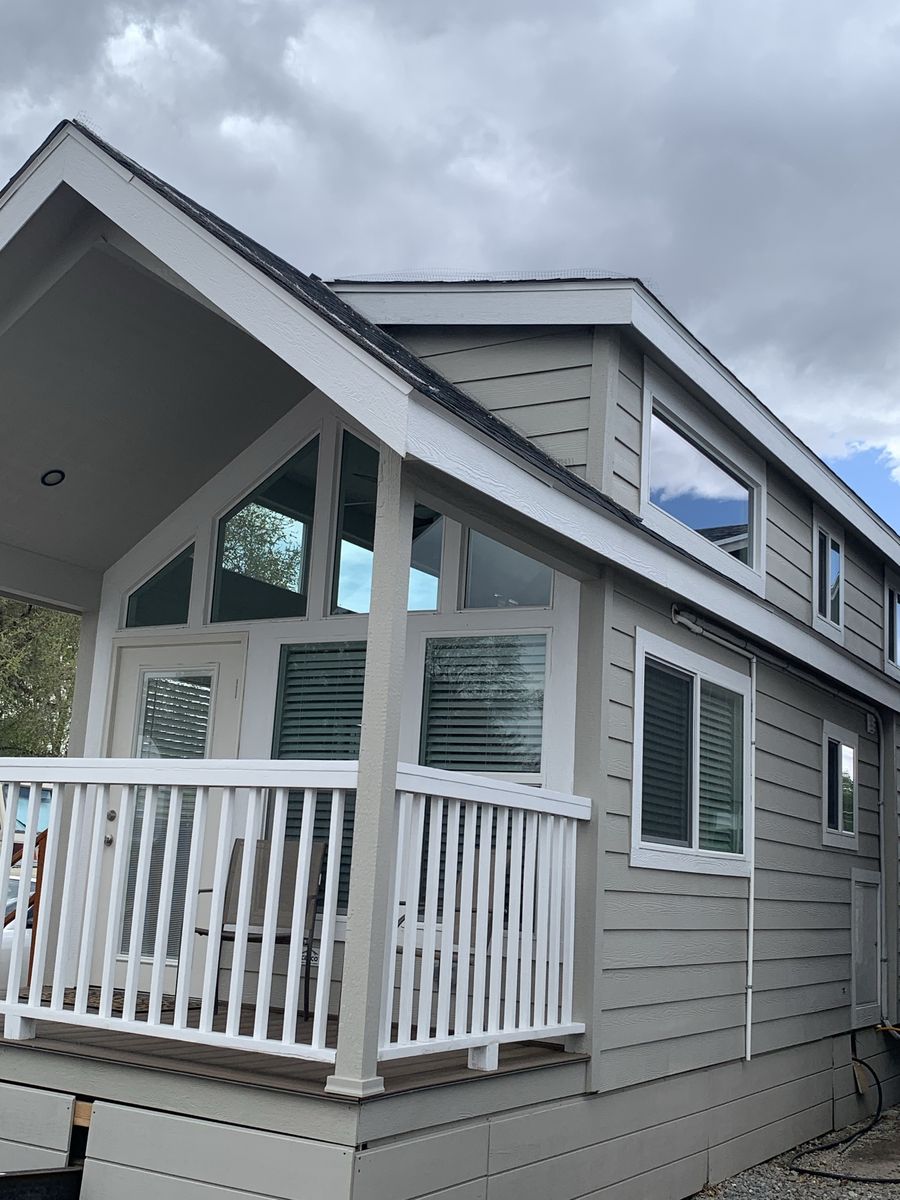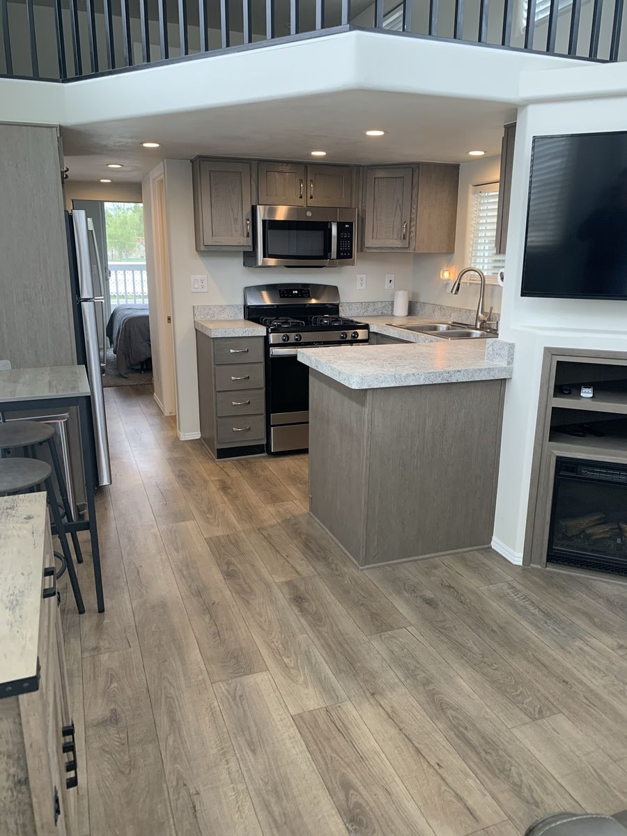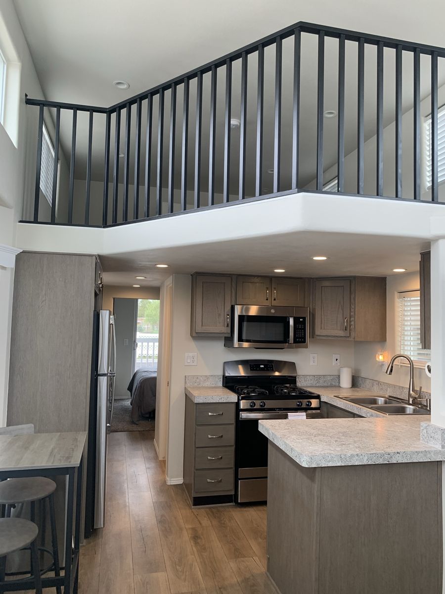 This Cavco- Alpine Loft Series model is 385 sq ft with 1 bedroom, 1 bath, a taller loft area. U shaped kitchen that has GE appliances which includes, gas stove, microwave, fridge, dishwasher, stackable GE Washer and Dryer. Also, includes electric reclining loveseat, small kitchen table and a credenza for additional storage. Queen size bed frame & mattress. It has a high efficiency dual zone heating/AC system. Small electric fireplace with blower. Insulated skirting. 100amp service, Front and back trex decking. So much more to see! Located in Riverton, UT. I do have information on a company that can move it wherever you need. These tiny homes are selling fast and going up in price every year. So, if you’re looking for a second home to place somewhere, a guest house/ADU, Airbnb, or maybe a long-term rental, this is it! you will love it! Very comfortable! I have additional pictures and video if you are interested to see more.