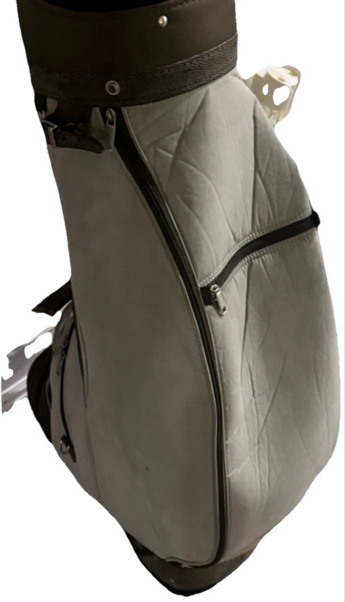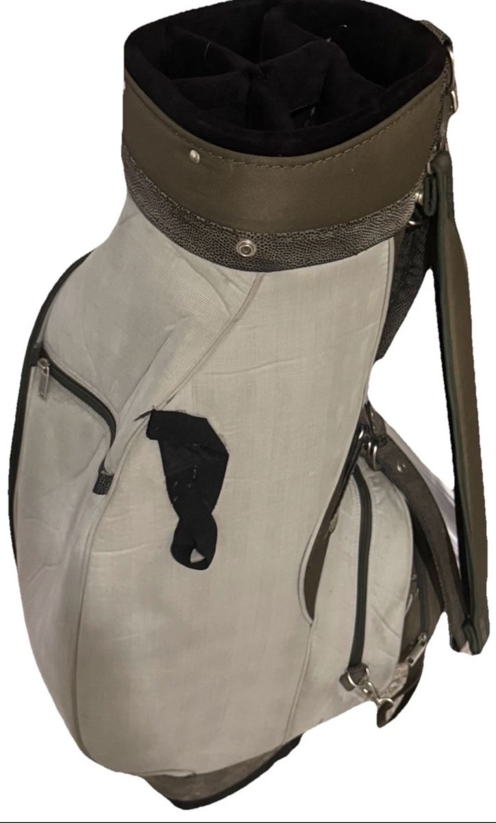 Vintage, Sage green cream, Carry Golf Bag Shoulder Strap 4-Way Divider, with leather bindings. Model 30822