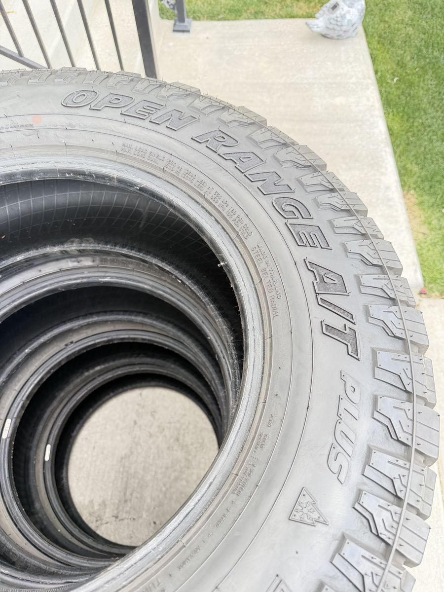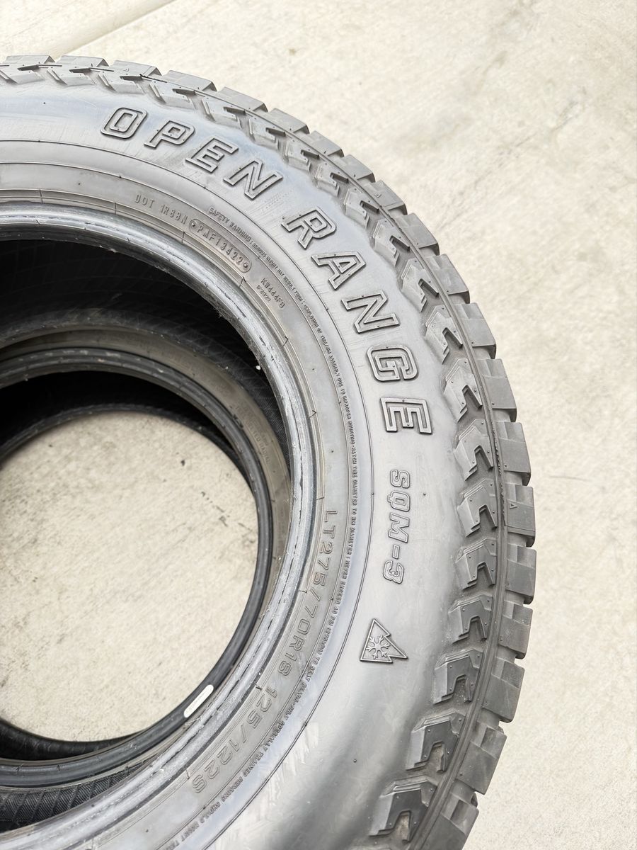 ApplePaySet of 4-275/70R18 Open Range All Terrain Load E in great condition asking $600 obo 2 tires are open range plus 90% life left 2 tires are open range 60% life left Text anytime 385-402-2292
