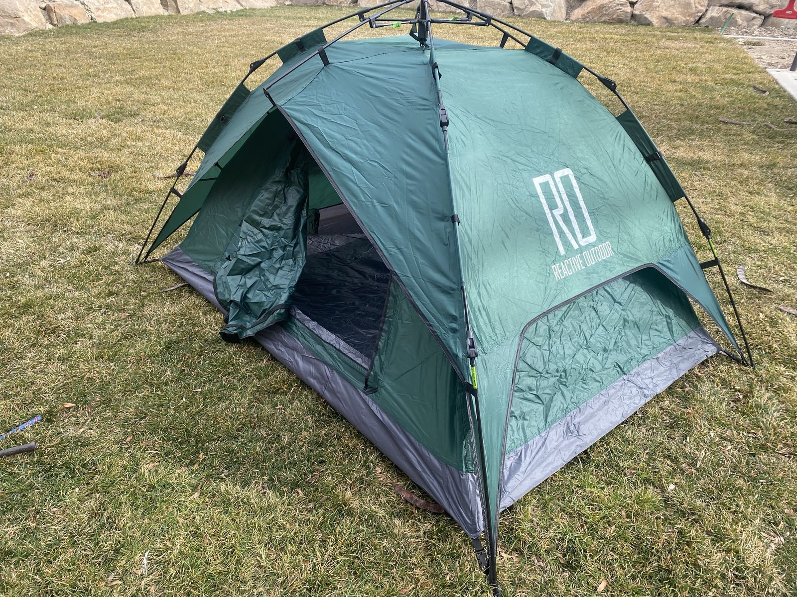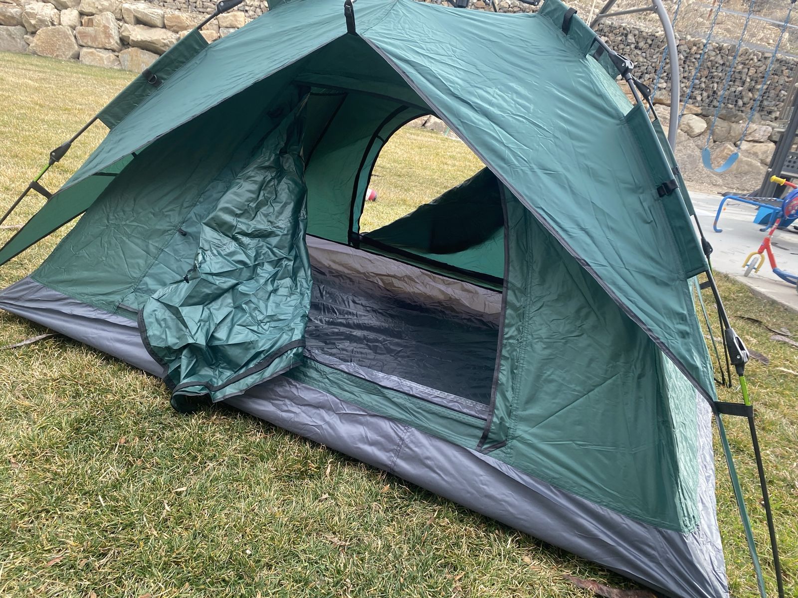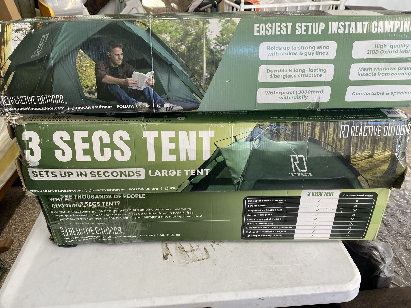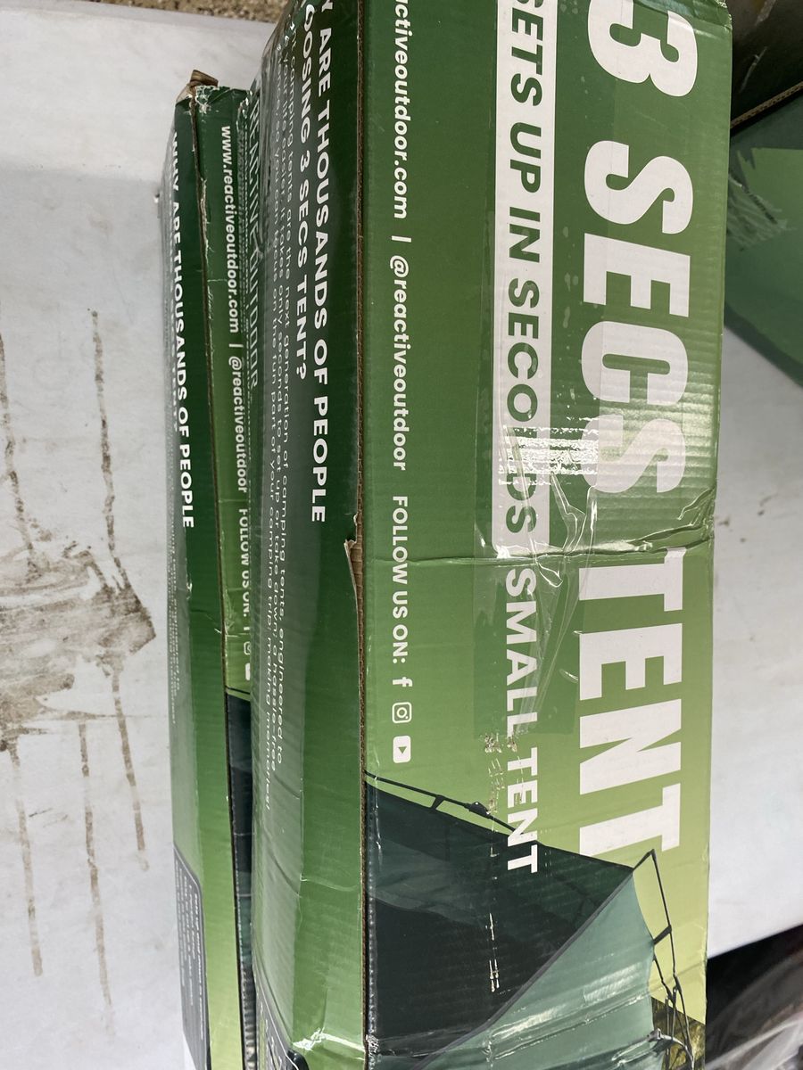 Brand new in box. I have a few. They do set up in 3 seconds by your self. Super slick and fast.