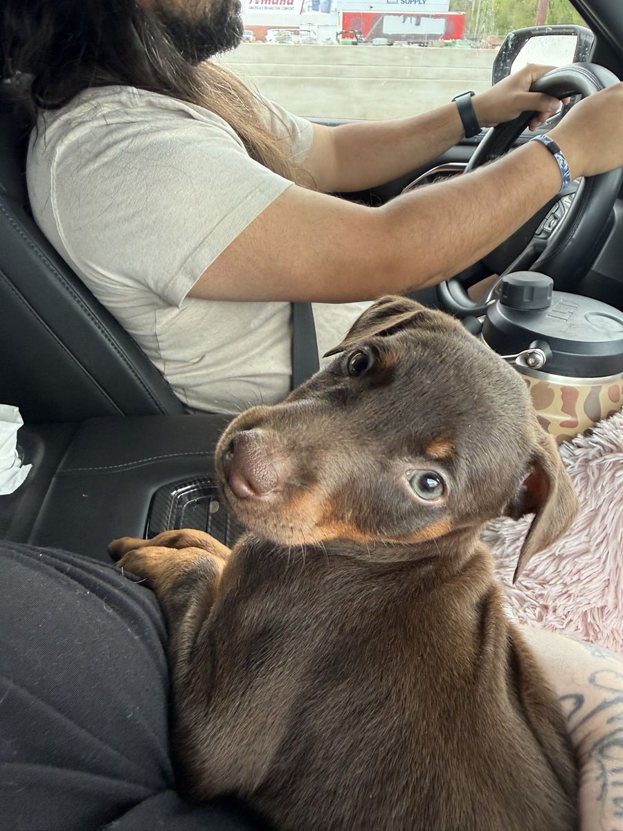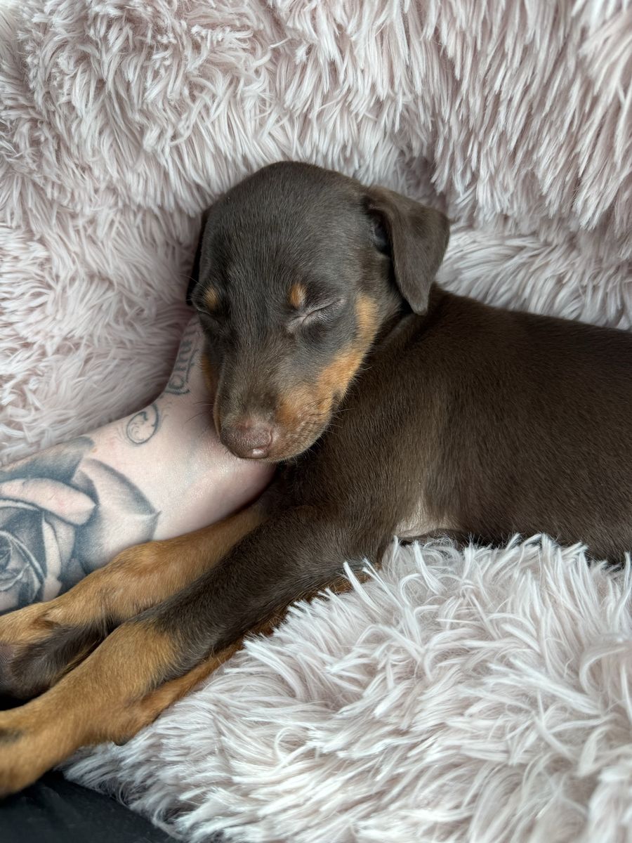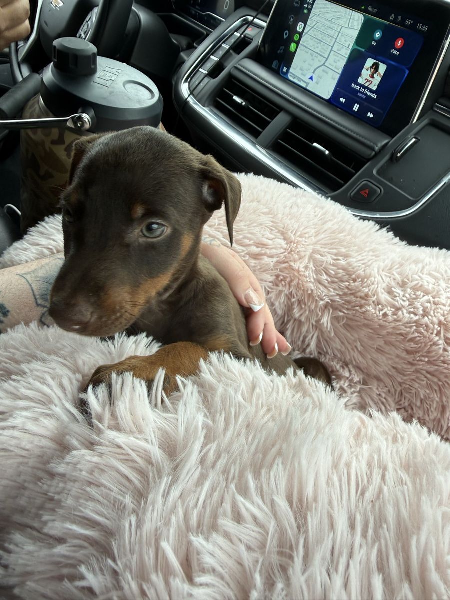 ApplePay7 weeks old red female purebred Doberman ready to go home, first round of shots given. Tail is docked and dew claws removed. Mom and dad both purebred Dobermans with no health issues. She comes with leash, kennel, bed, big bag of her food, and toys. Located in eagle mountain but can meet. She’s been around my kids ages 8, 4 and 1. Listing for way cheaper then normal prices for purebred Dobermans because she doesn’t come with papers. First come first serve will not hold I’m sorry to many flakes. She comes with everything you need she will just need a bigger kennel when she gets older. Serious inquiries only please.