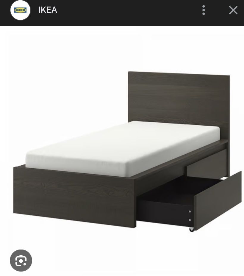 VenmoFull size bed frame. Black finish with a headboard and footboard. Has two storage drawers underneath the mattress.