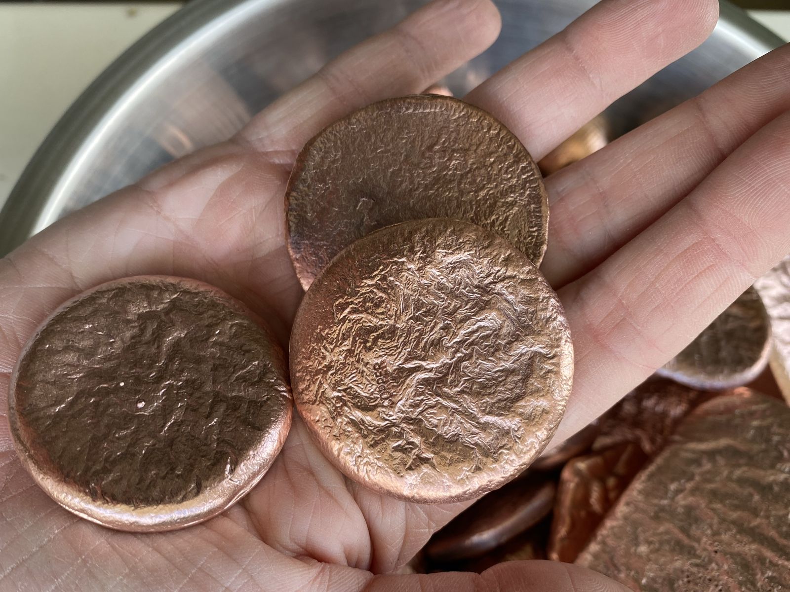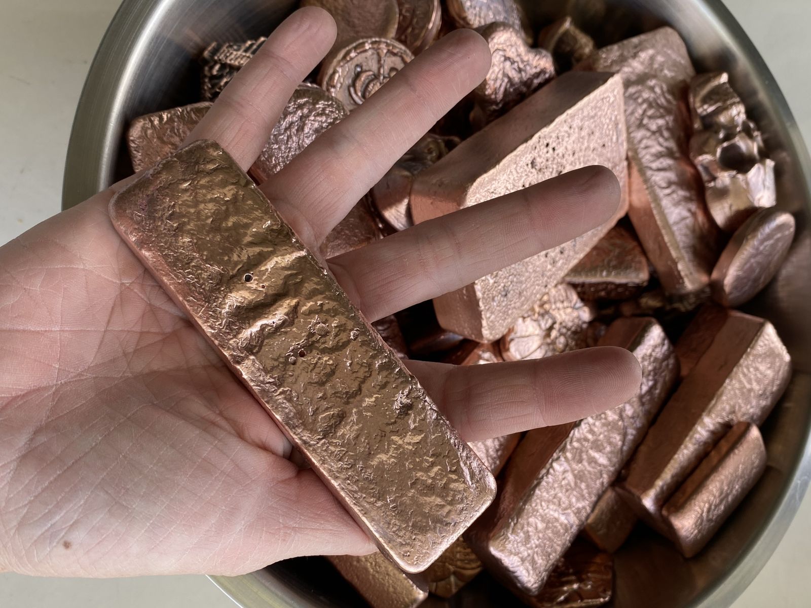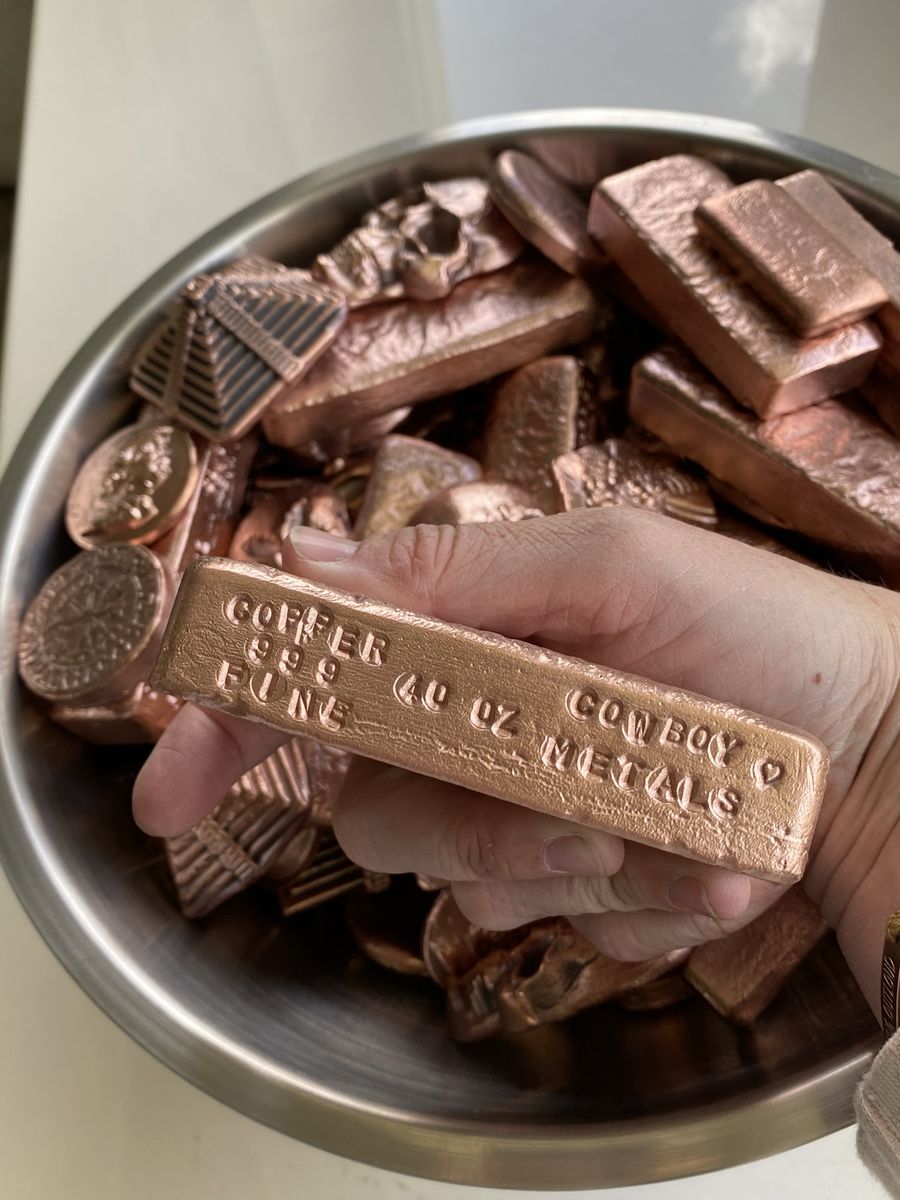 42 Lbs! Copper .999 Fine Hand PoUred From Sizes 3 oz to 40oz biggest in a bar Please text 801-929-9049 All for 2300!
