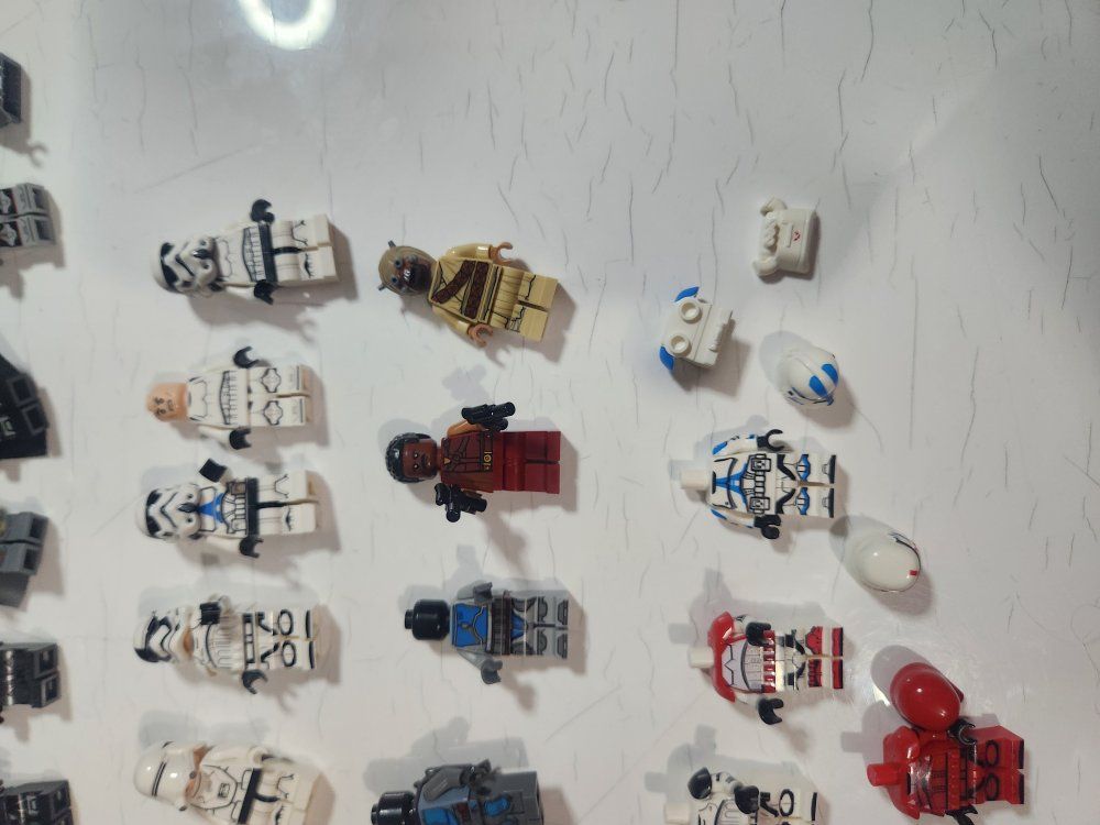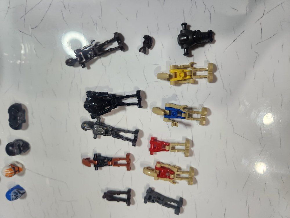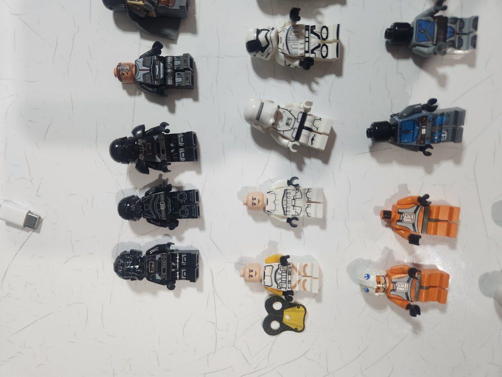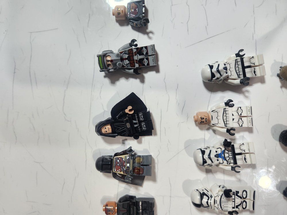 Cool collection of Lego Star Wars minifigures and accessories. Has a bunch of different figures, like Stormtroopers, pilots, and droids. Also comes with some helmets, blasters, and extra body parts. Good for collectors or just for play! I do know that 5 of them are not lego, but from what I can tell the rest are.
