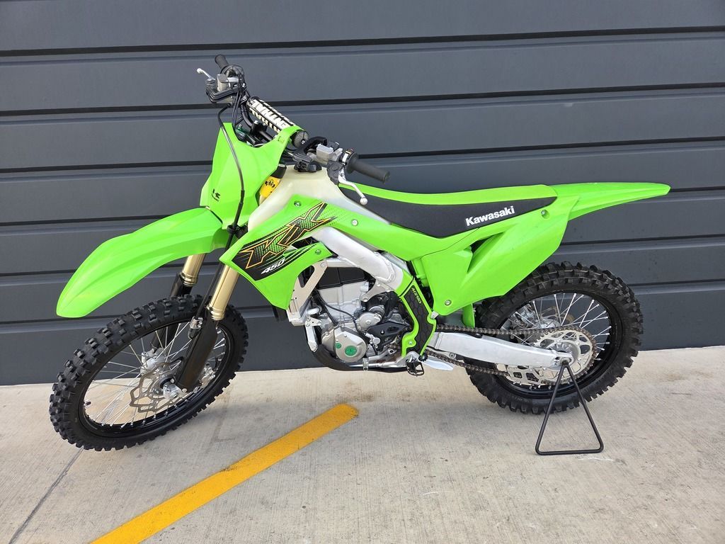 With 2020 Kawasaki KX™450 motorcycles, the top step of the podium is within your grasp. KX450 motorcycles are infused with cutting-edge technology derived from Kawasaki factory race teams. Feel the difference of the powerful 449cc engine and lean chassis as you lead the competition. From the gate to the checkered flag, the KX450 is built to win.