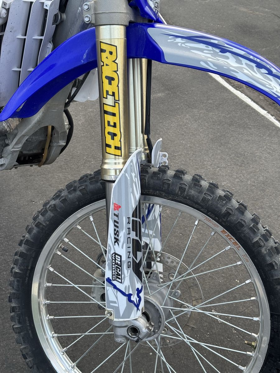 Upgrades include: -RaceTech suspension -Excel front wheel -Renthal sprocket -Dubach Racing NS-4 slip-on exhaust -Tusk blue anodized gas cap -Ribbed performance seat cover -DecalWorksGraphics -ProTaper bars