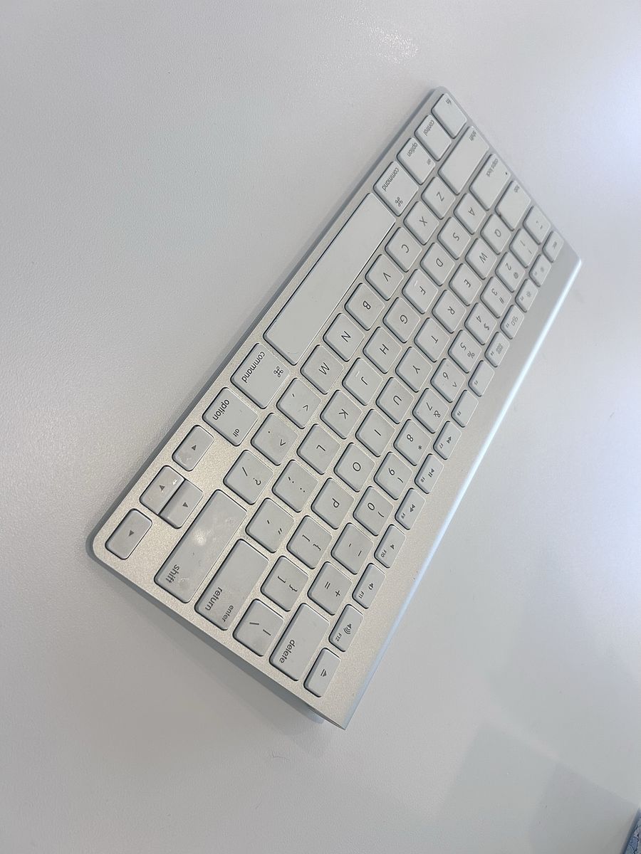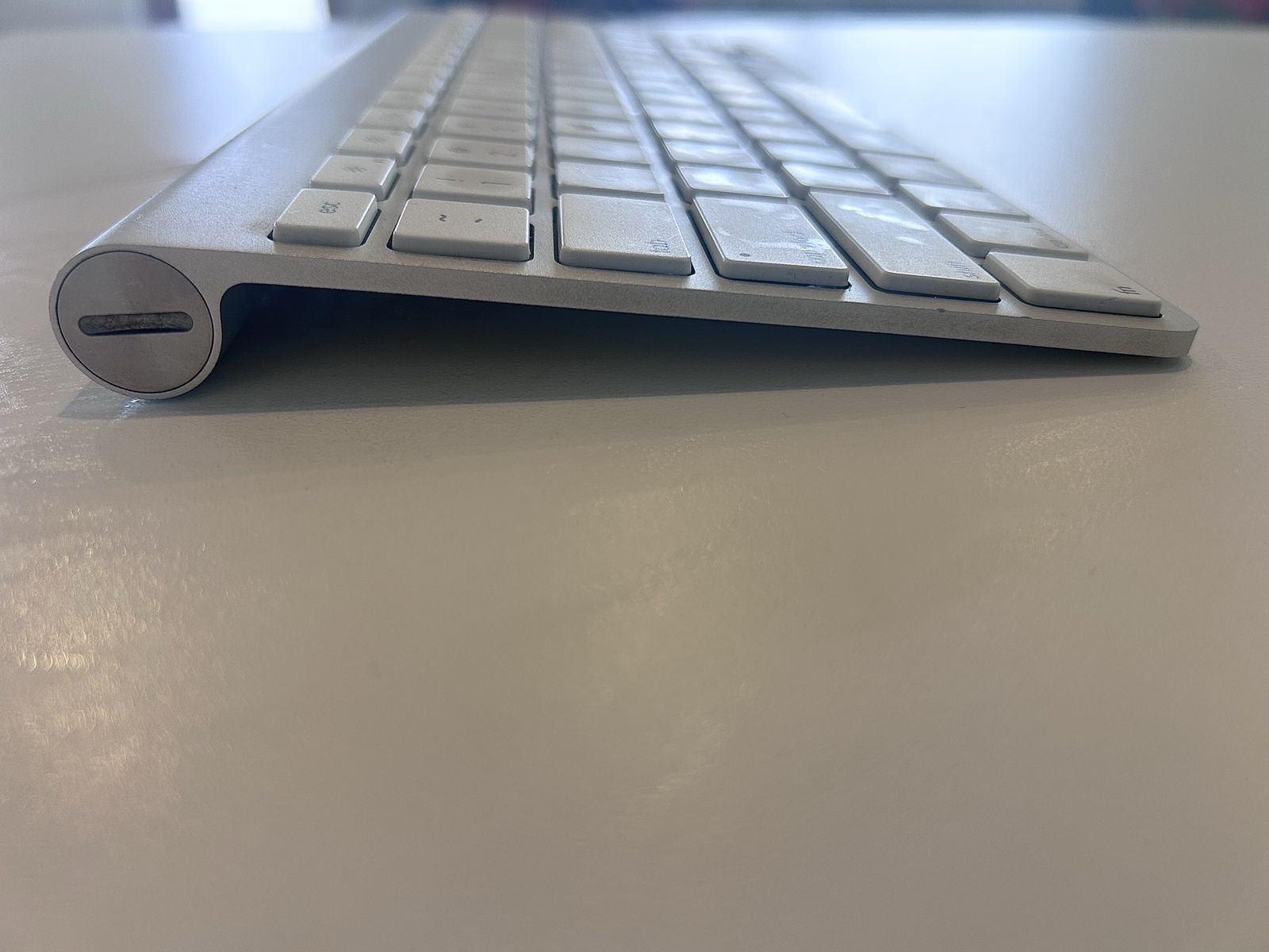 ZelleThe Apple A1314 Wireless Keyboard - MC184LL/B is a sleek and stylish keyboard designed by Apple. It features a slim design with a white, anodized aluminum finish, making it a stylish addition to any workspace. The QWERTY keyboard layout is standard and offers English language options. With wireless connectivity via Bluetooth, this keyboard provides a convenient and clutter-free typing experience. Its intelligent power management feature ensures efficient power usage, while the durable plastic material ensures longevity. Ideal for those looking for a reliable and efficient keyboard for their computing needs.