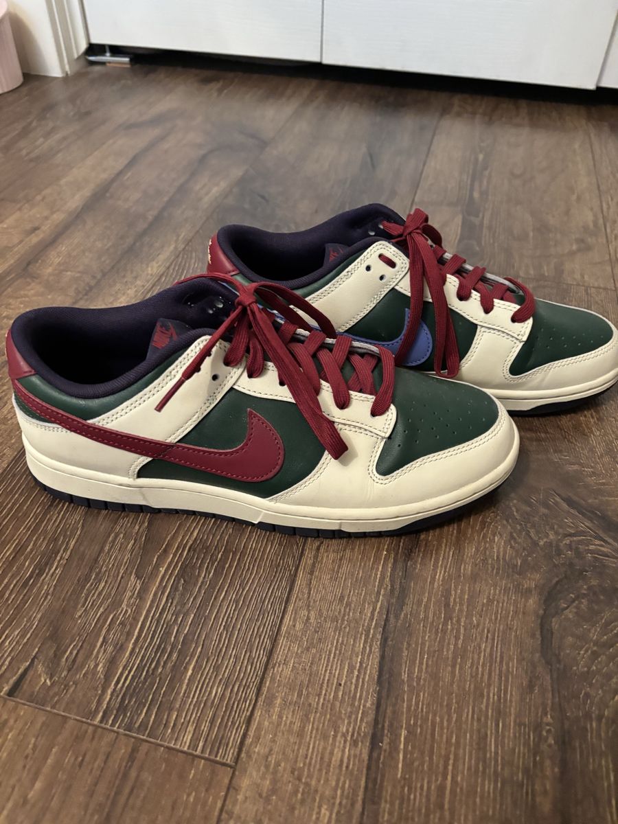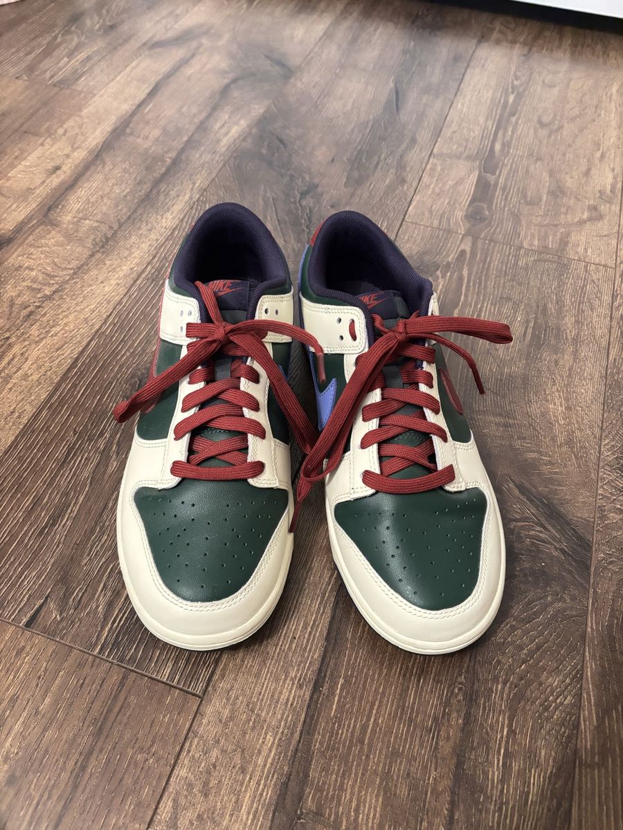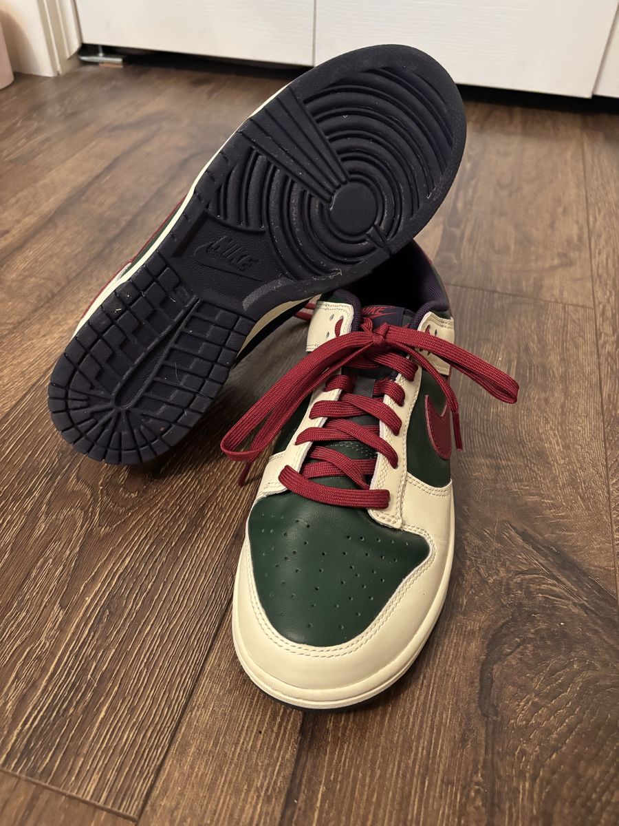 PayPalBrand new Nike green and cream sneakers with red laces – size 9M - never been worn! Really cool color combo and perfect condition.