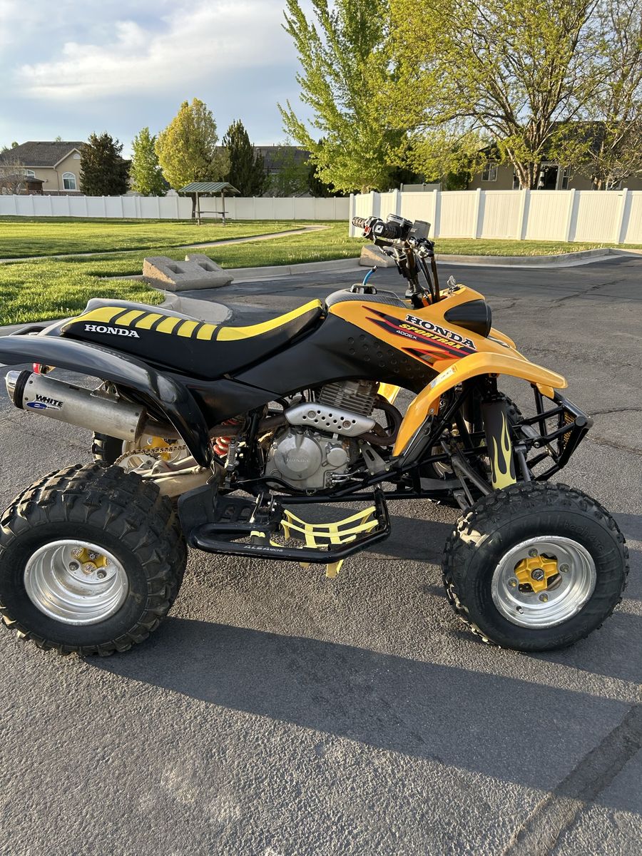 2001 Honda 400EX low hours on new top end. Likely 6 hours. Does have a stage 2 cam. Also has a new carrier bearing/housing and new wheels bearings. At the time of the top end and carrier bearing being done, I painted the frame, and added the back black plastics. Also did new brake pads all around. This also has a 2” riser and Protaper High ATV bars. I’m 6’5” and needed the extra reach. Also includes a White Brothers exhaust. Anyway this thing rips. Hate to sell it, but we’re relocating to another state and cannot take this bad johnny with us. Any questions please ask! Thanks for looking.