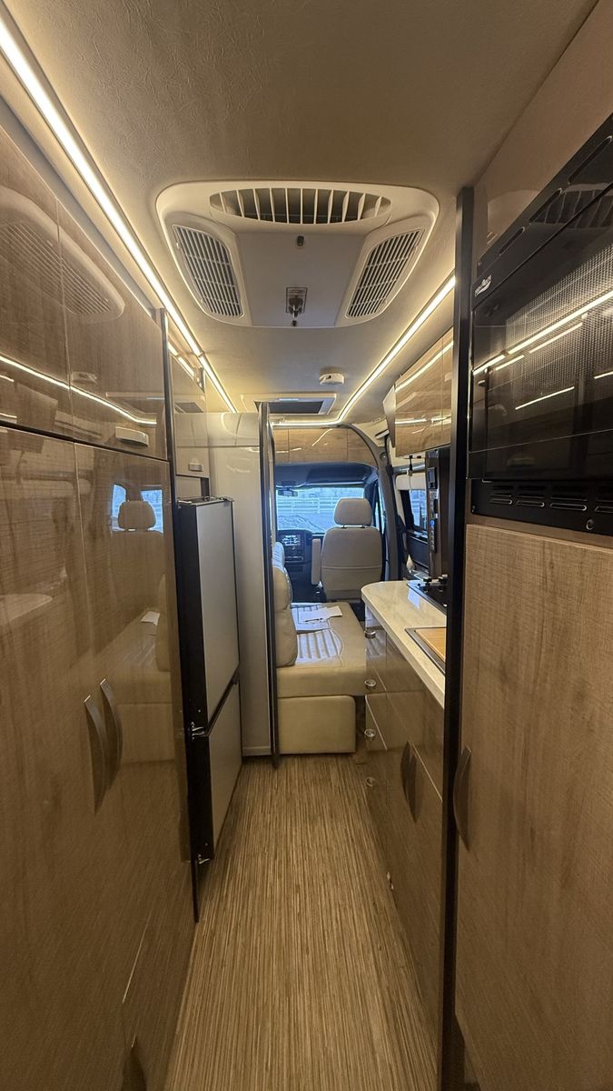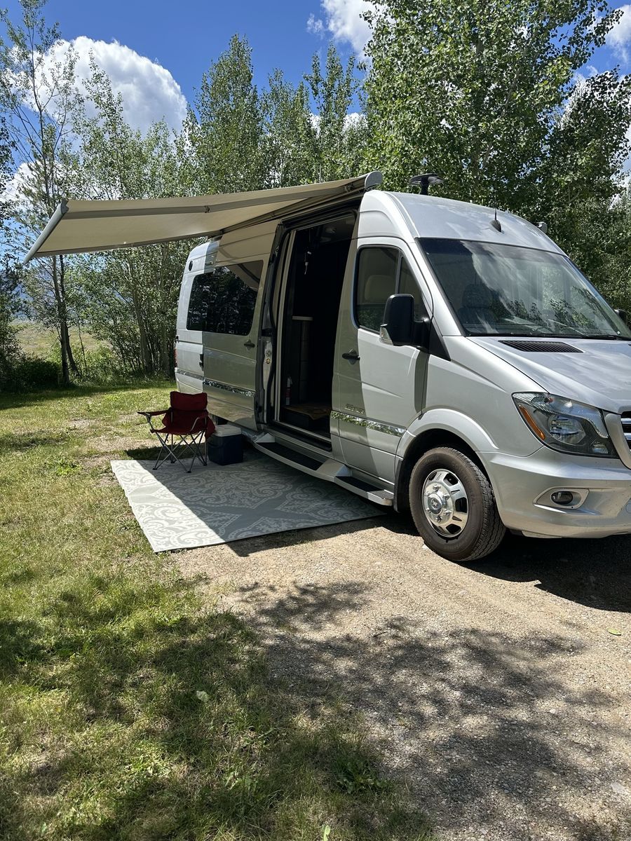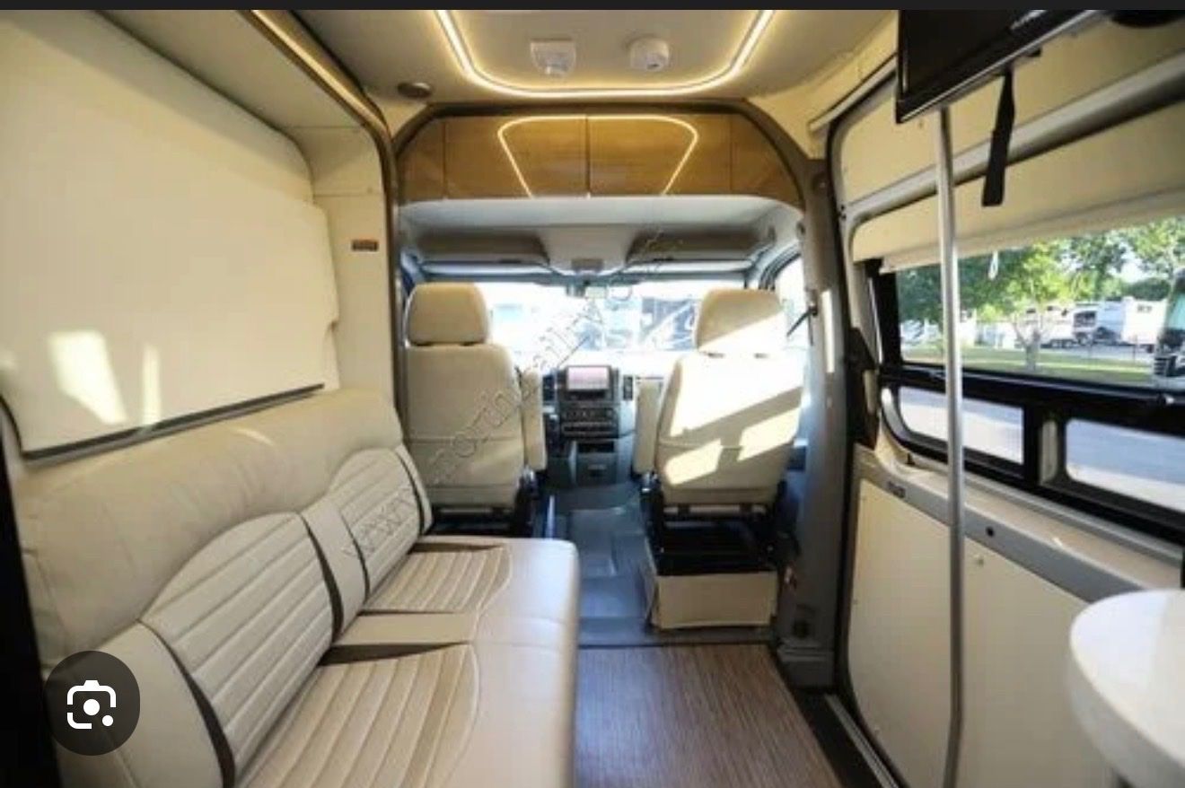 Specs: Engine - Mercedes- Benz/V6 Chassis - Model 3500 Mercedes-Benz Sprinter Fuel Type - Diesel Carburetion Type - Fuel Injected Turbocharged 5 Speed Automatic Transmission with Overdrive Driveline Type - 4 x 2 Length - 24.25 ft Width - 6.35 ft Height - 9.67 ft Interior Height - 6.25 ft Wheelbase - 14.17 ft GVWR - 11,030 lbs Towing Capacity - 5000 lbs Fuel Capacity - 24.5 gal Fresh Water Tank Capacity - 44.0 gal Gray Water Tank Capacity - 25.o gal Black Water Tank Capacity - 22.0 gal Total Propane Tank Capacity - 9.5 gal Power Retractable Slideout Power Retractable Awning Kitchen - Sink, 3 Burner Stove, Microwave Oven, Refrigerator/Freezer Leather Sofa Double Bed (Murphy Bed) Folds into Slideout (Electric) Bathroom - Dry Bath: Sink, Shower, Toilet, Medicine Cabinet, Big Mirror. Vent/Fan Spare Tire Hydraulic Disc Front and Rear Brakes Rear Hitch/Receiver Bucket Leather Seats - Recline and Swivel with Armrests GPS Brand - Rand McNally Battery Power Converter Air Conditioner Heater TV with Cable, Satellite and Antenna Prewired Water Heater Tank - 3.0 gal Electric/Propane Radios with Satellite Speakers- Interior/Exterior CD Player Interior Decor - Wood Finish, Wallpaper Primary Exterior Color - Silver Solar Panels Located for pick-up in Twin Falls, Idaho
