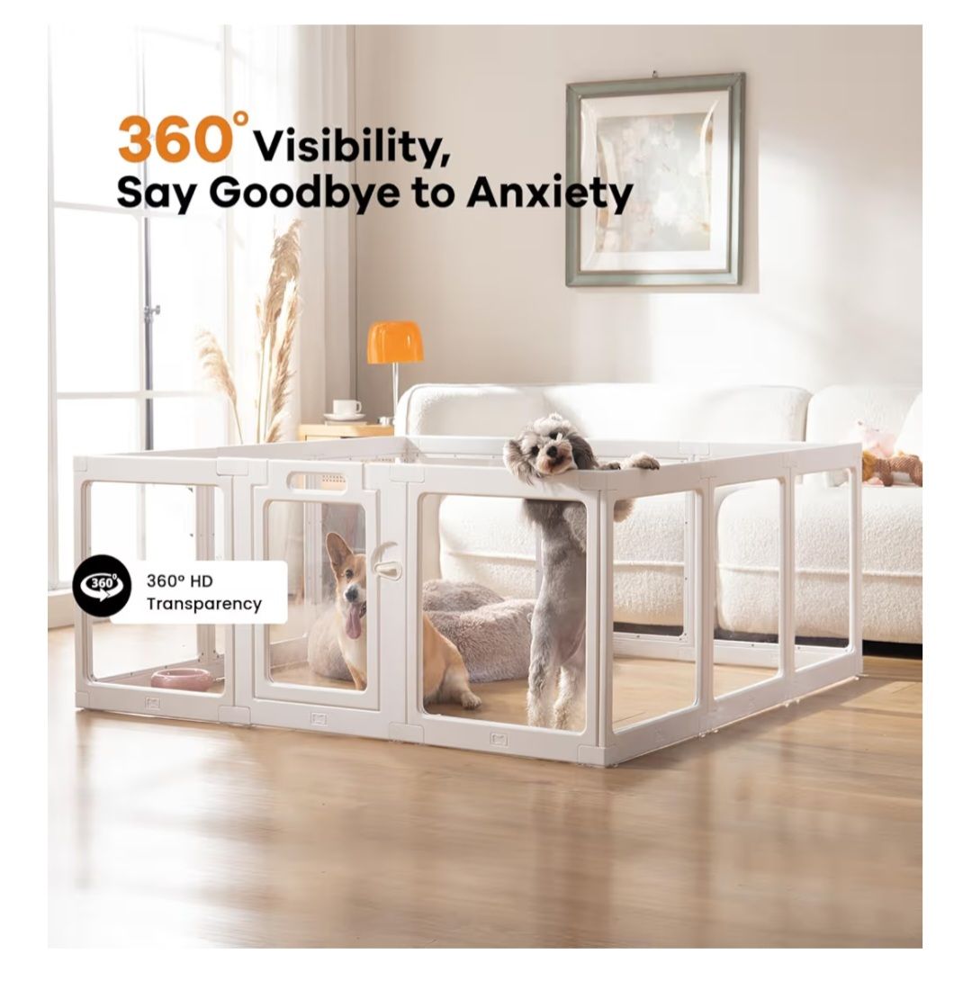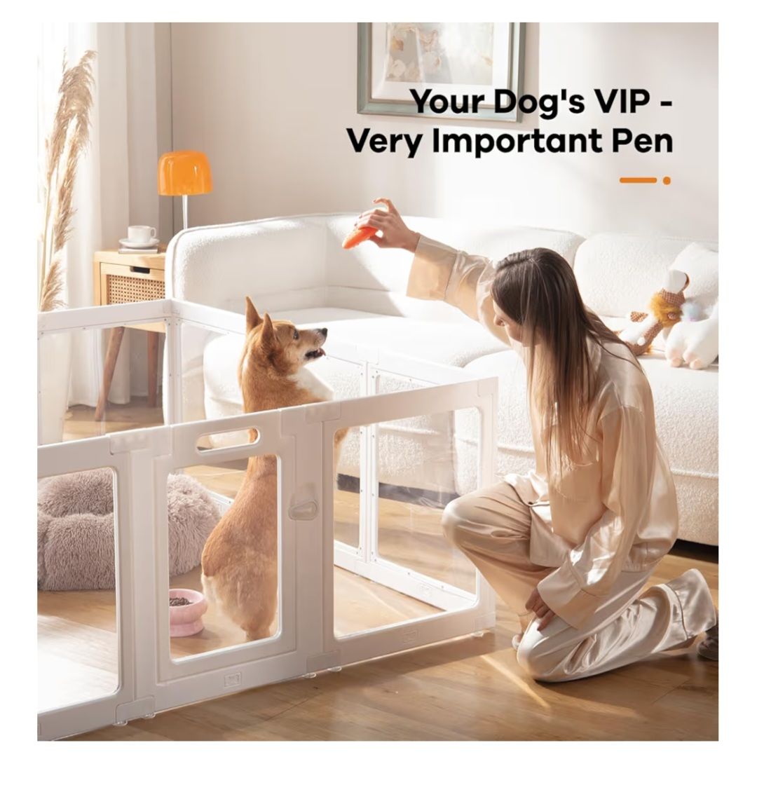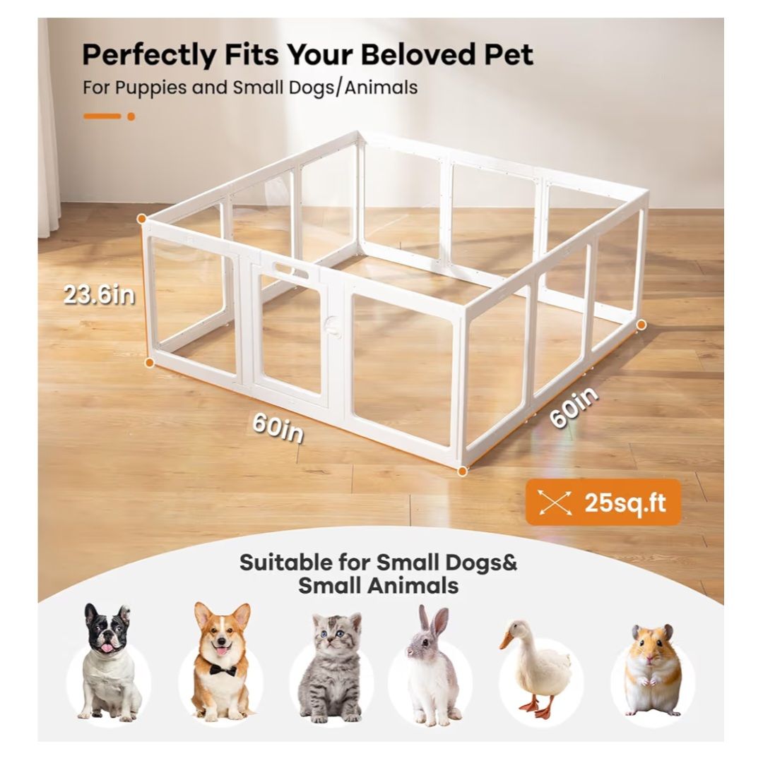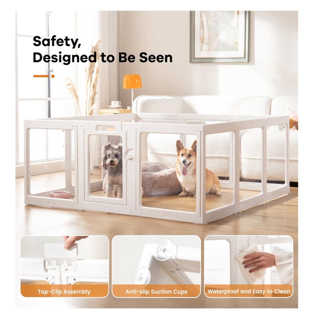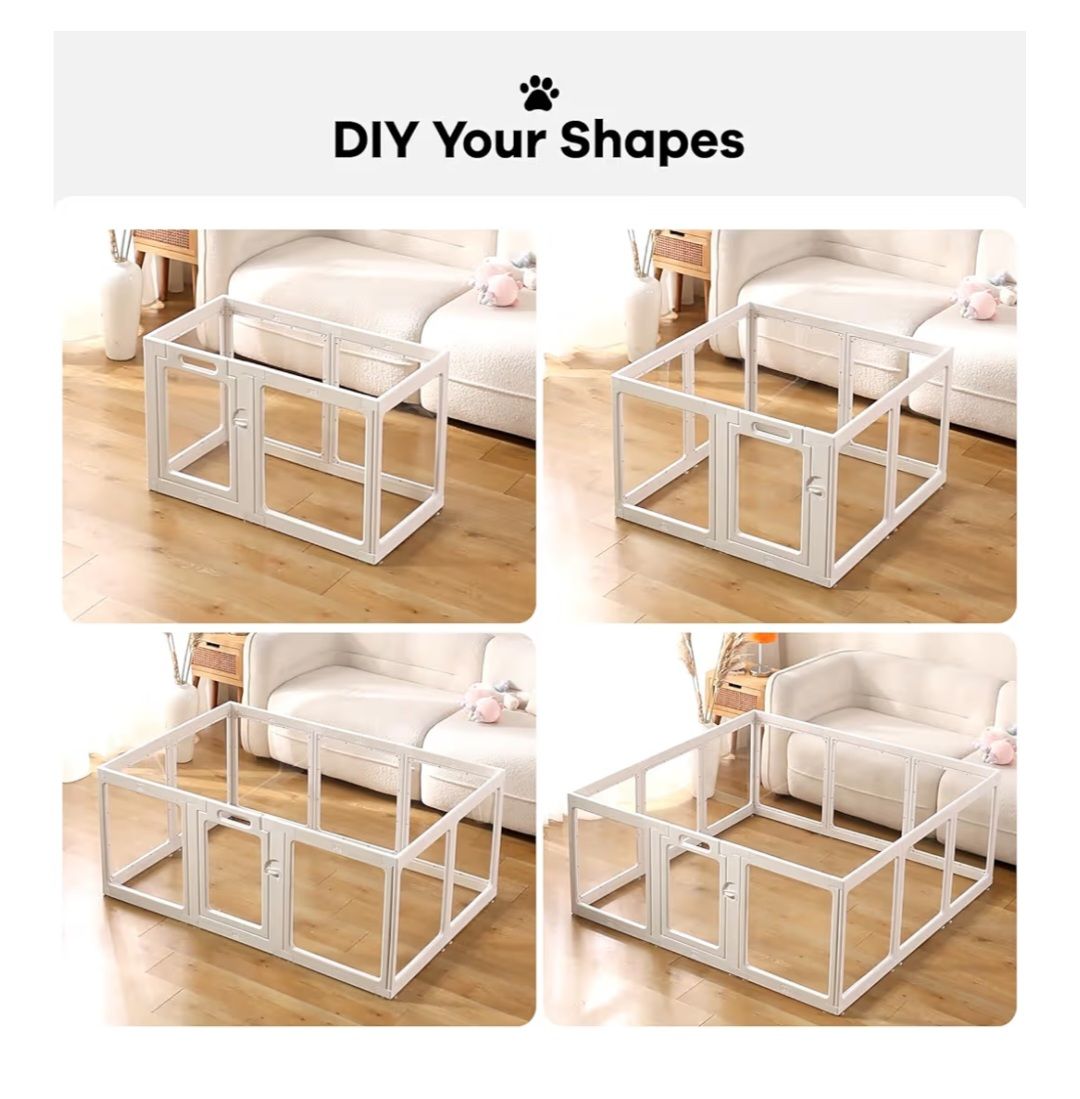 PayPalNEW ClimbHome Clear Acrylic Dog / Small Pet Playpen. Perfect indoor playpen containment for kittens, puppies, dogs, rabbits, etc. 12 panel, white, see-thru containment crate. Retail $179. Draper.