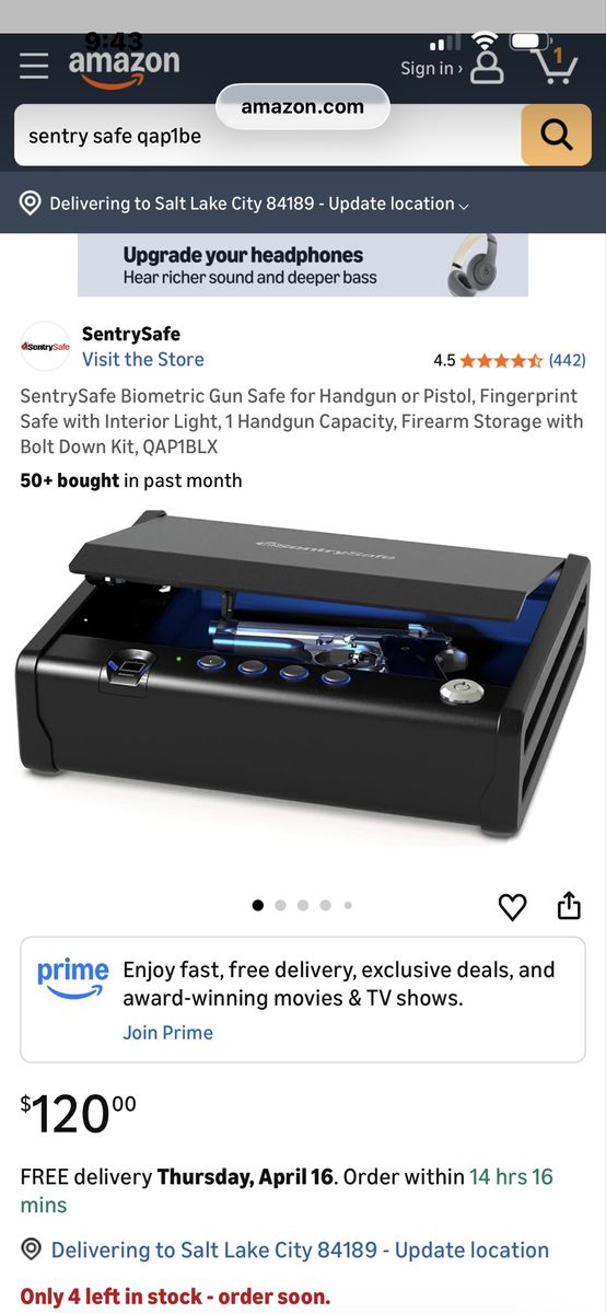 Brand new sentry safe biometric for handguns and pistols! New in box and in in amazing conditions! These are sweet for the bedside, protect your kids and yourself at the same time! Ready for your house! ! This exact safe is for sale right now on Amazon for 120.00 as shown in photos! don’t pay retail prices, call Dustin instead at 801-205-3404, I need it gone!