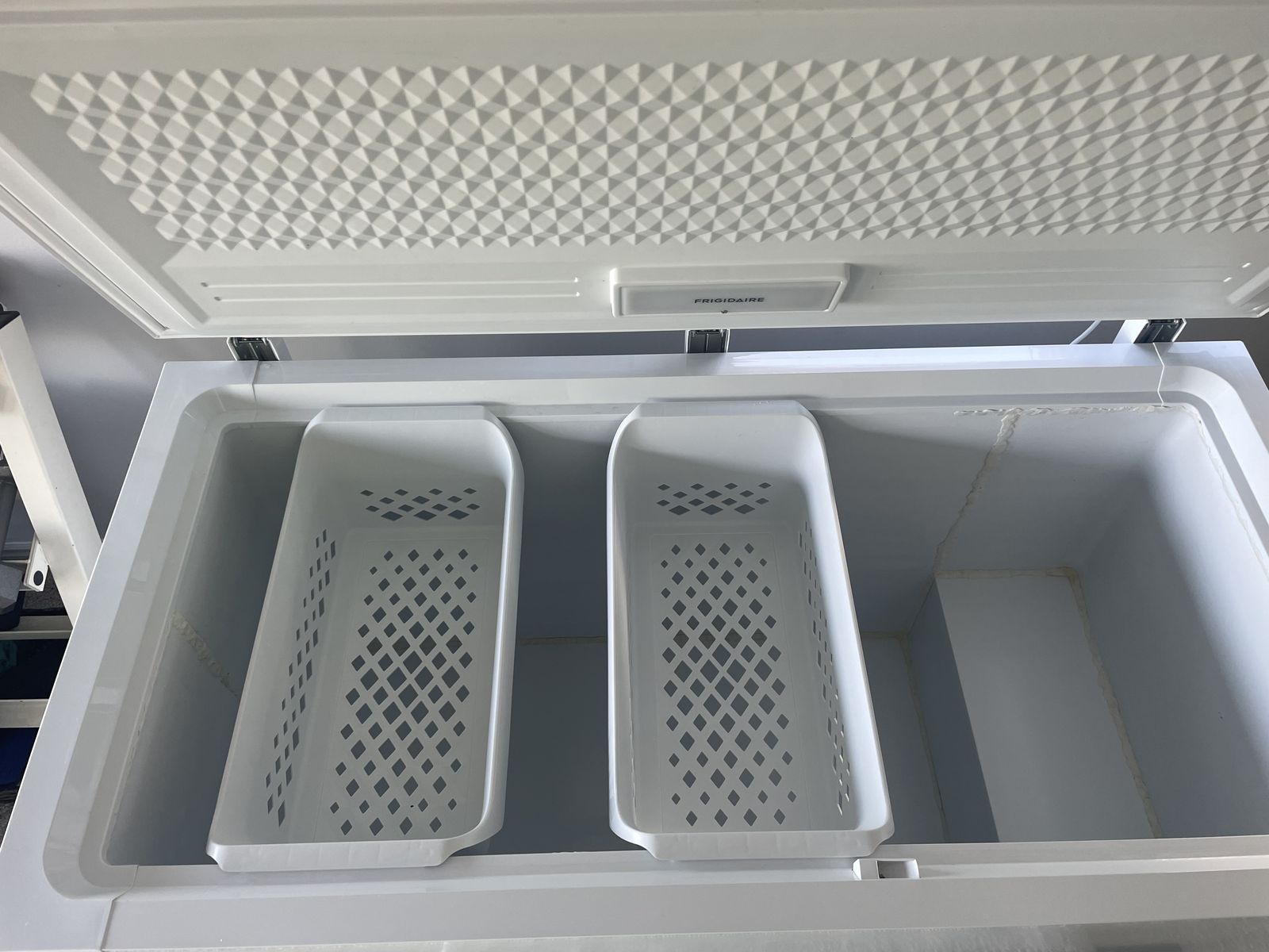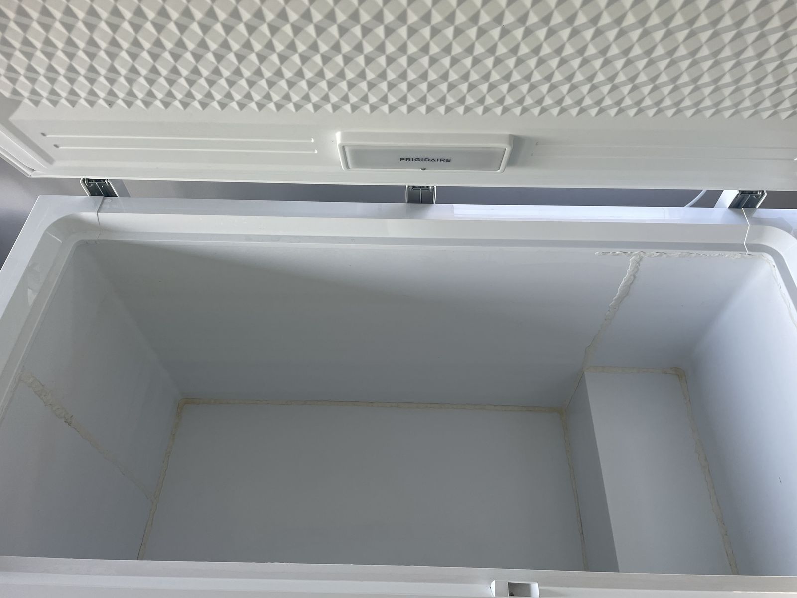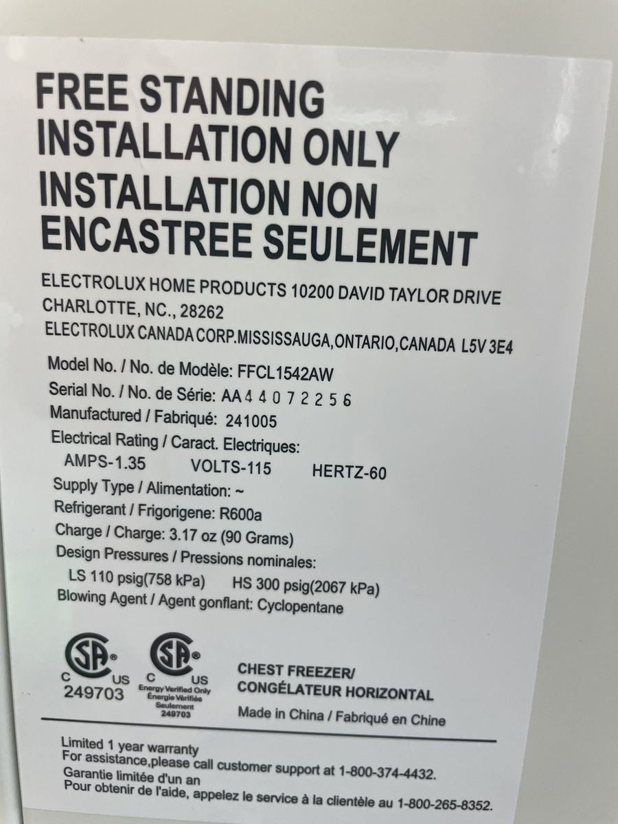 ZelleFrigidaire 14.8 cu ft with LED light and manual defrost. The seams are caulked because it was used as a cold plunge for 1 year. Works great and is like new!