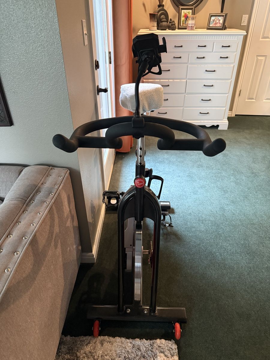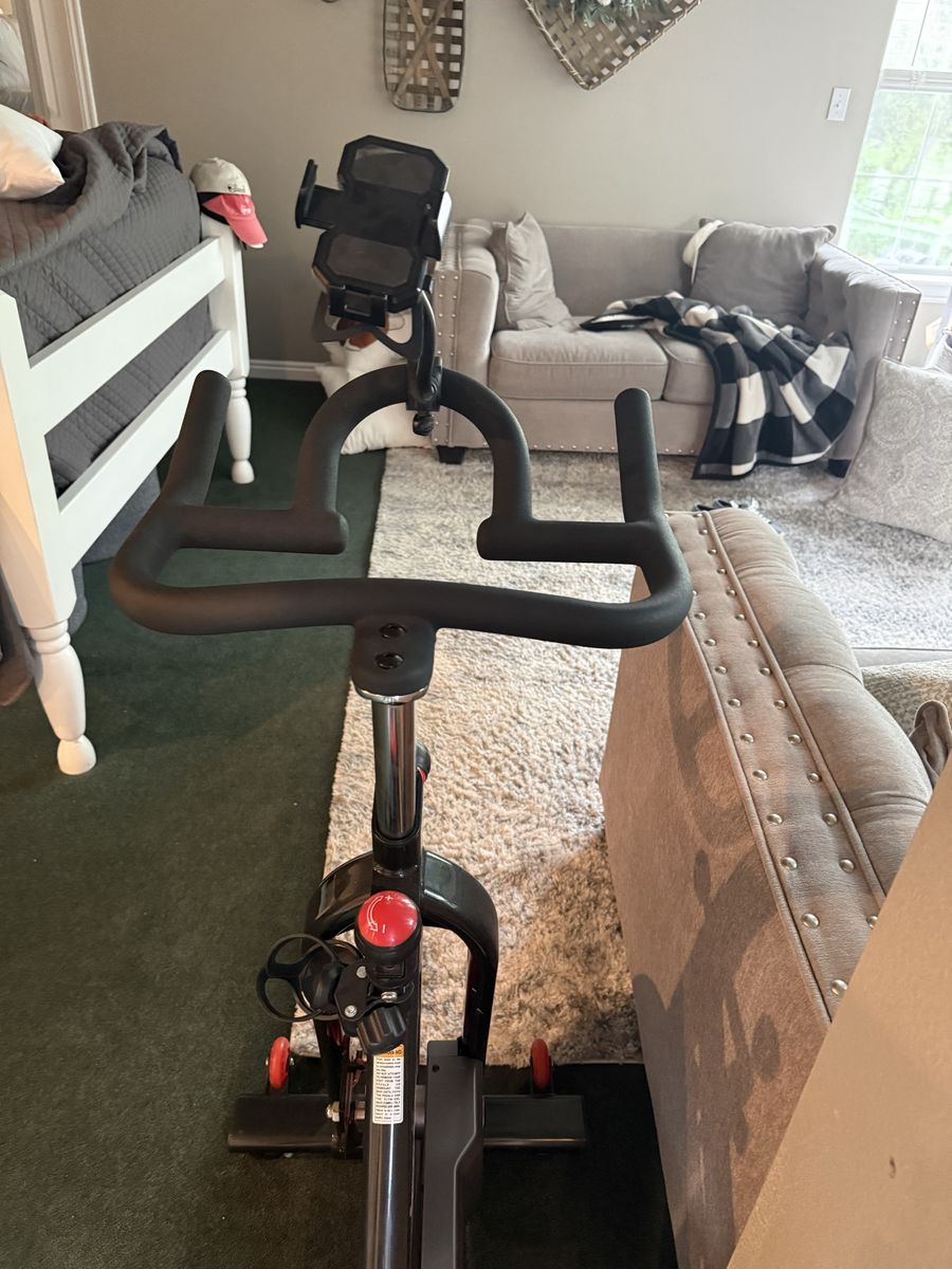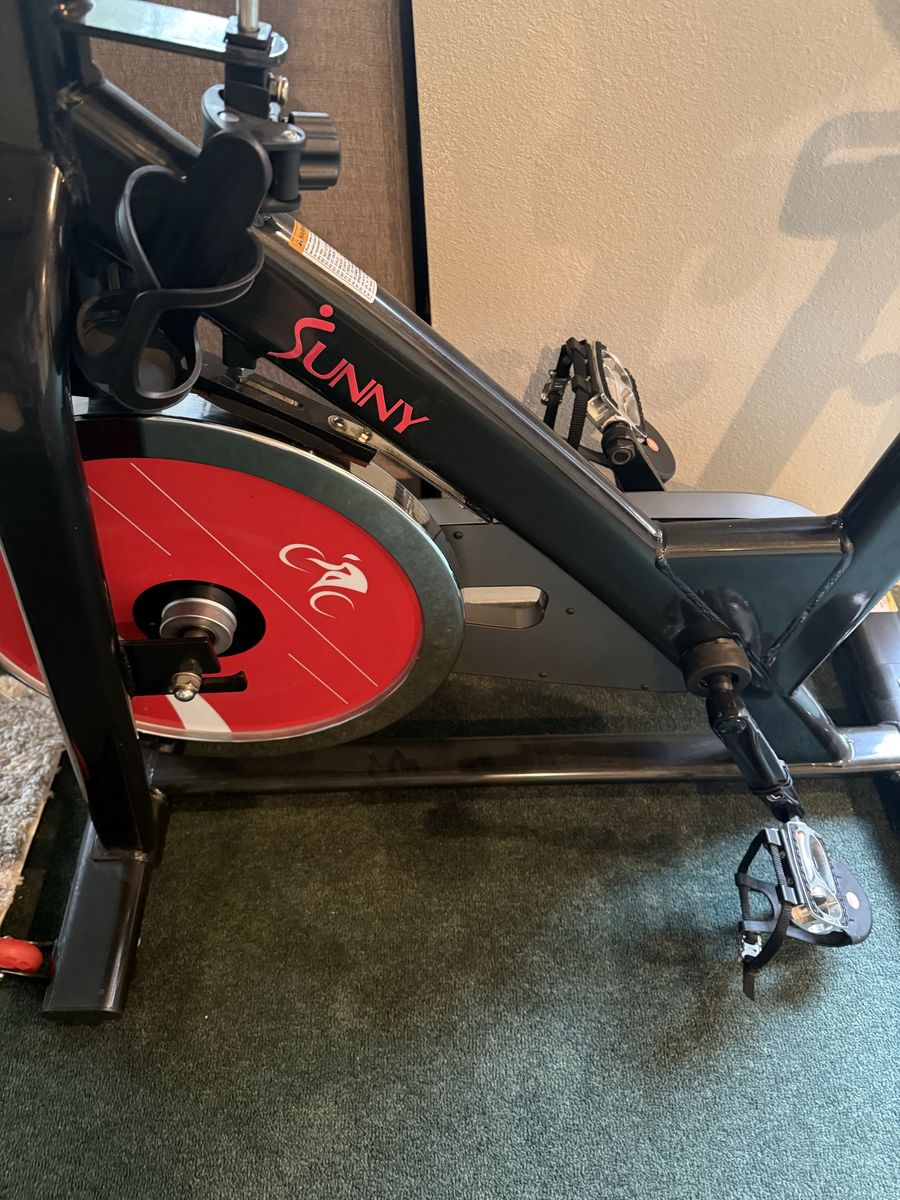 VenmoSunny Brand exercise bike has larger seat with cover water holder and a holder to put your phone. Has a sensor attacked to gauge mileage.