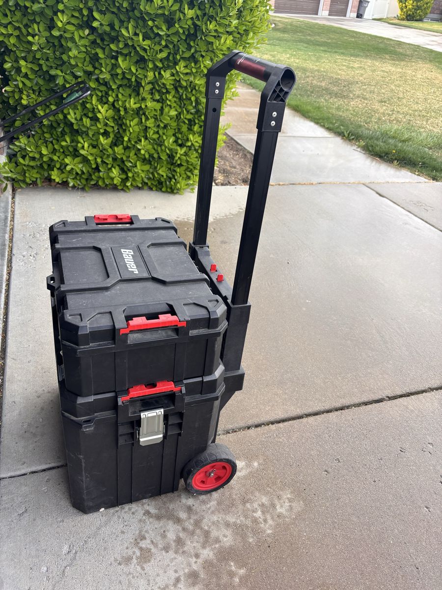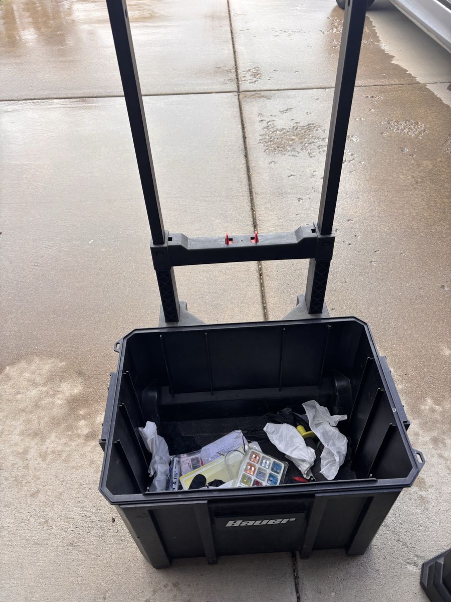 Nice rolling Bauer 2 level tool box, full of stuff! Some tools, lots of screws, nails, parts, pieces, and more! A single level box is 69.99 right now at harbor freight! That means you are getting the 2nd level and all the other stuff for free! Comes as shown in photos! don’t pay retail prices, call Dustin instead at 801-205-3404, I need it gone!