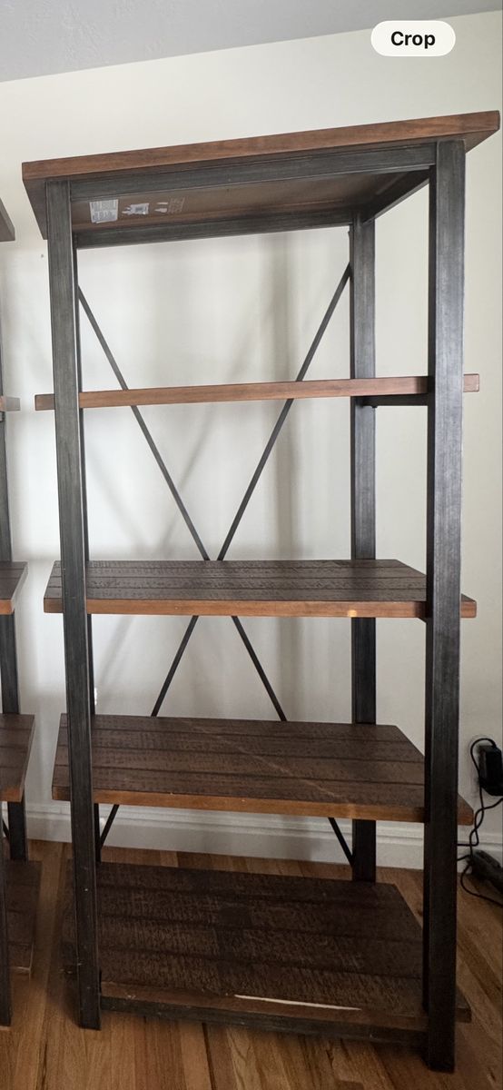 VenmoAshley furniture industrial style bookcases. Open shelving with X design. Each measures 75” tall, 34” wide 15” deep. Sturdy metal frame. Great for family room, office, bedroom, etc. 60 each or $100 for the pair.