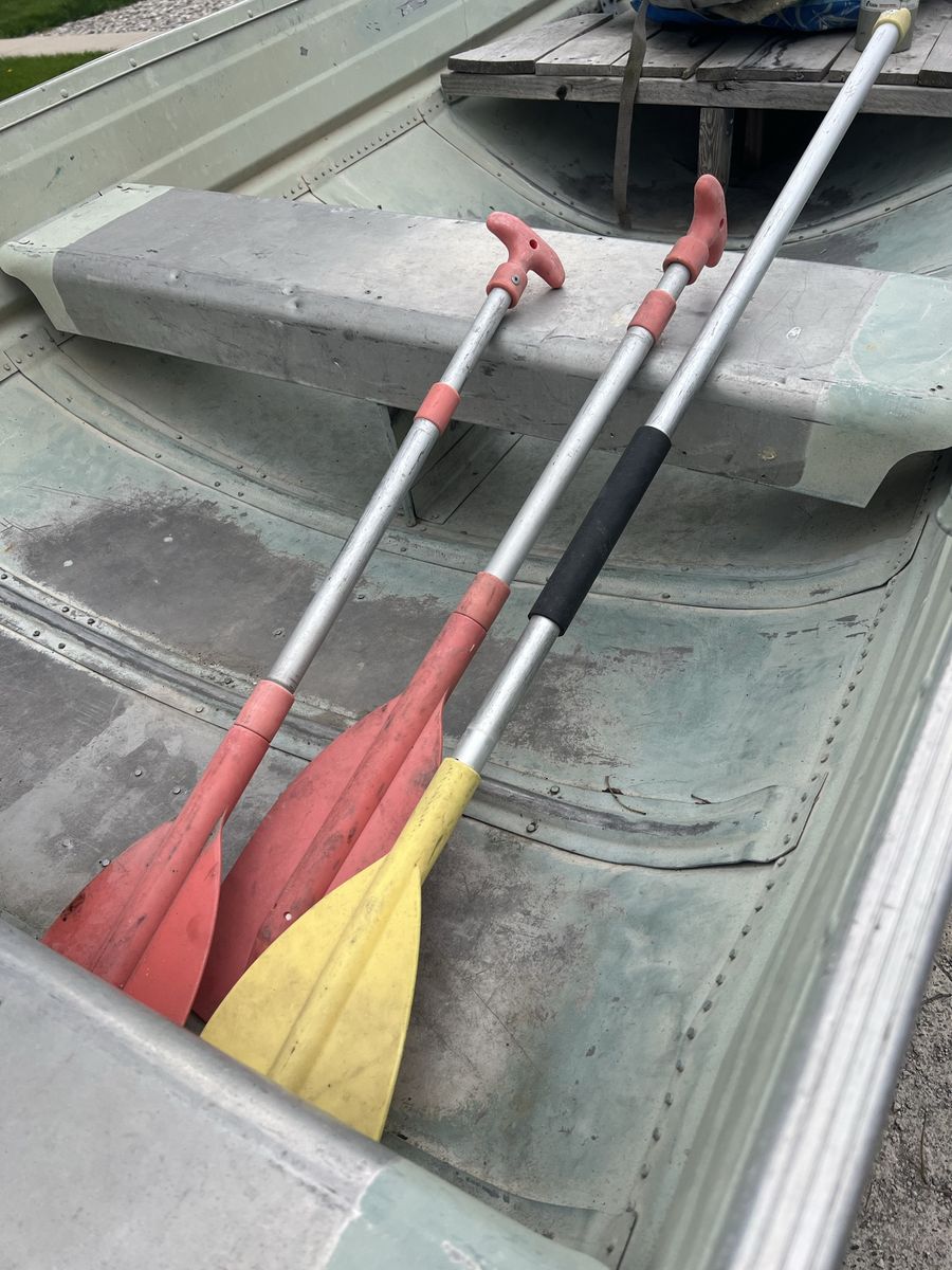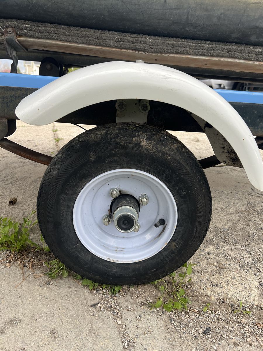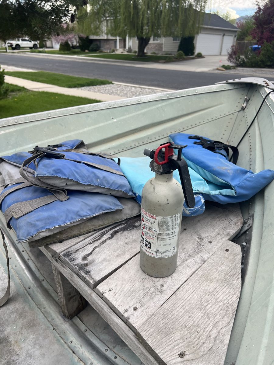 Comes with a very durable trailer in great condition, equipped with like-new tires for worry-free transport. Also includes oars, life jackets, and a fire extinguisher—everything you need to get on the water right away.