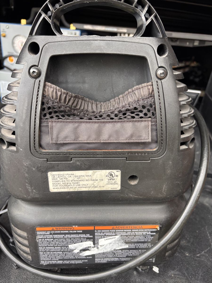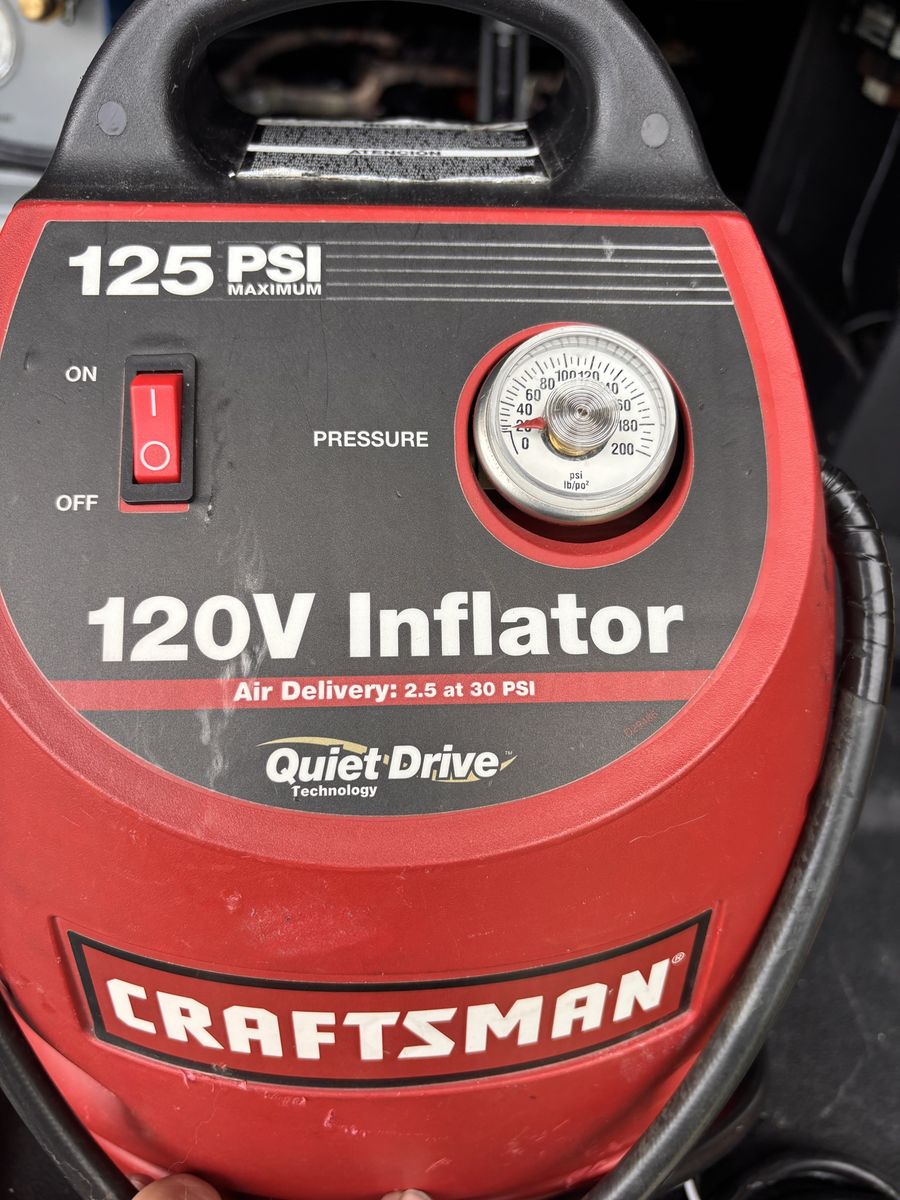Nice craftsman tire inflator in good working condition. Looks good and works great! Comes as shown in photos! Not perfect, scuffed and scratched a bit, and won’t hold pressure because the tip needs replaced, probably a 2.00 fix! Still inflates stuff though! that’s why the price is where it is! This unit would be well over 100.00 if it was perfect! don’t pay retail prices, call Dustin instead at 801-205-3404, I need it gone!