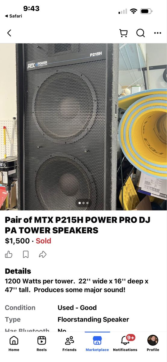 Nice MTX power pro p215h tower speaker in good working condition. Looks good and works great! Comes as shown in photos! Not perfect, scuffed and scratched a bit! And I only have a single! that’s why the price is where it is! This unit would be well over 1500.00 if it was perfect and a set! don’t pay retail prices, call Dustin instead at 801-205-3404, I need it gone!
