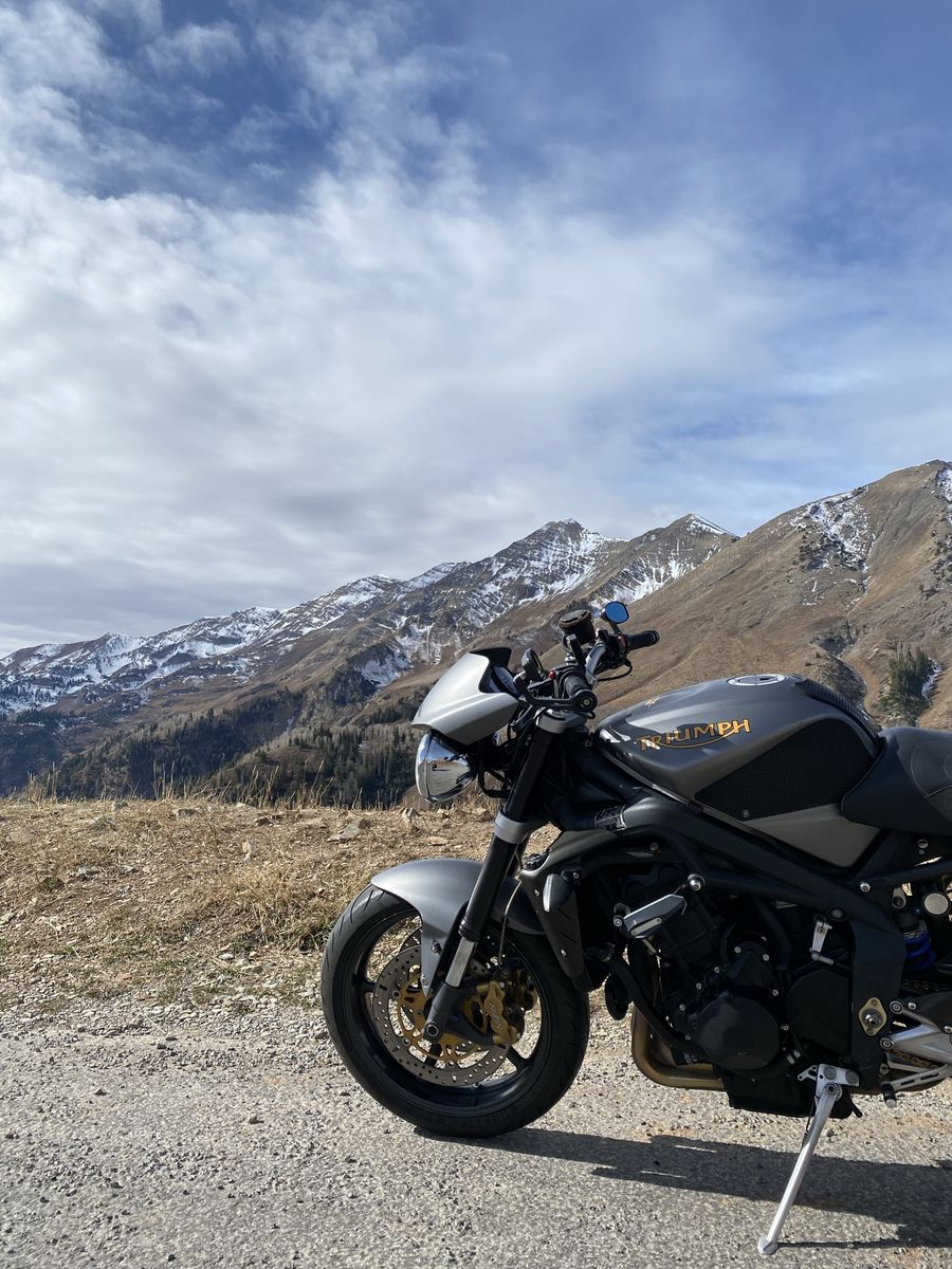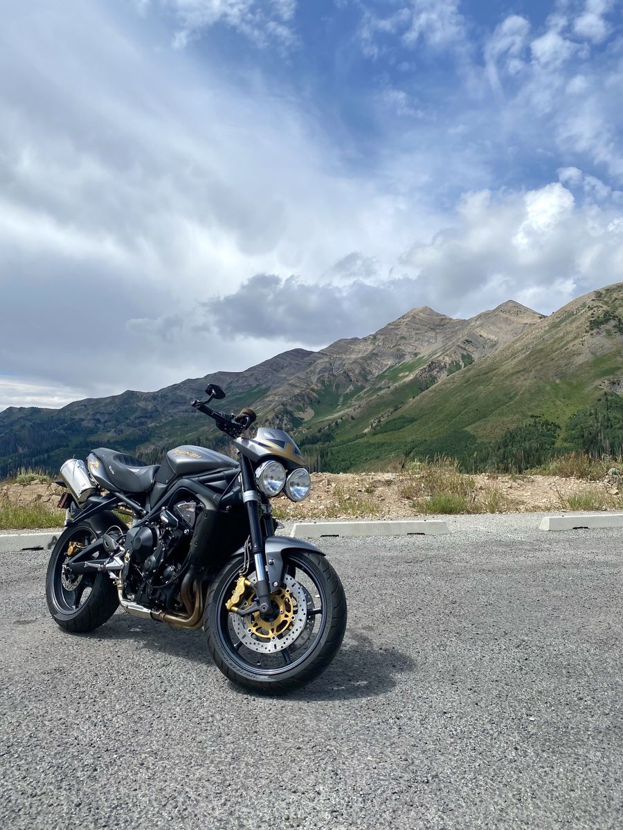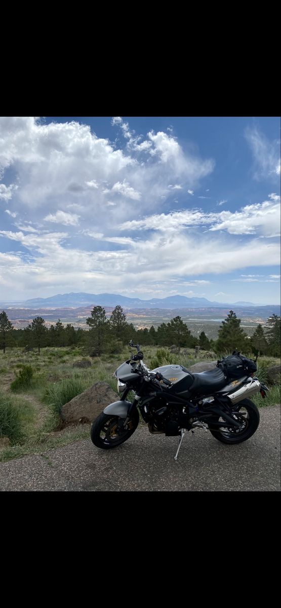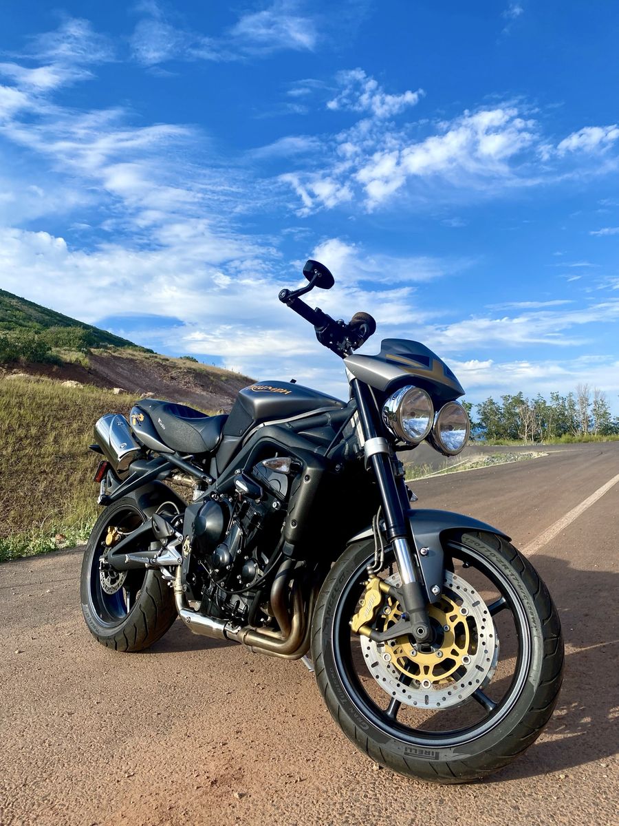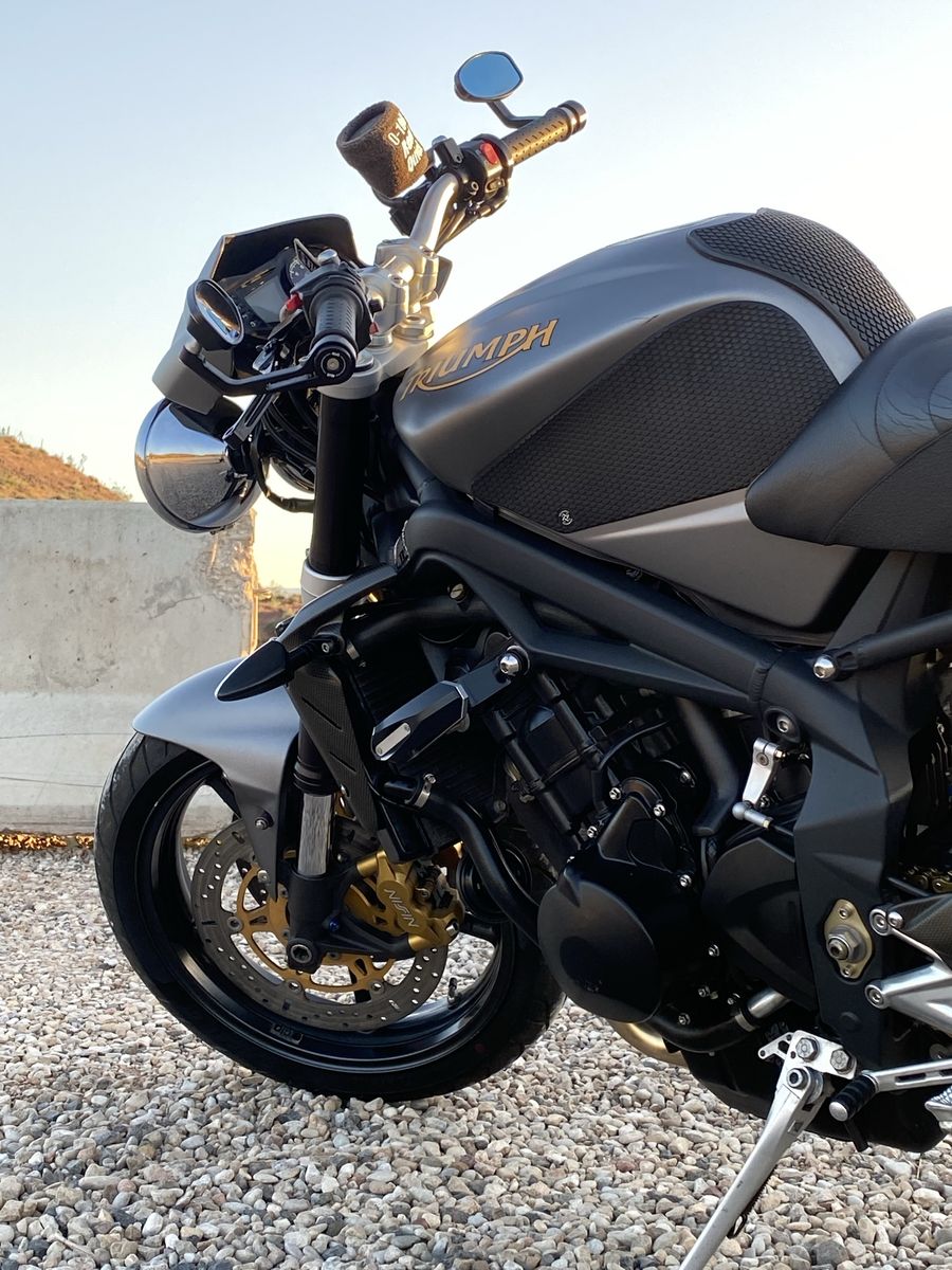 TOR exhaust/tune Triumph fly screen Supersprox 520 conversion Motocomposites hugger/shroud/heel plates Corbin saddle Vortex levers R&G bar ends SW Motech crash bars NOK fork seals Lithium battery Metzeler M9RR tires Engine Ice coolant, flushed yearly Valve check last done at 32k