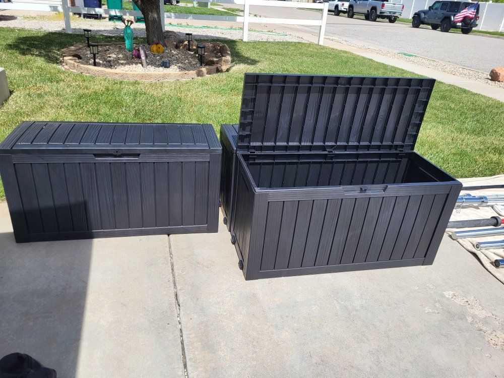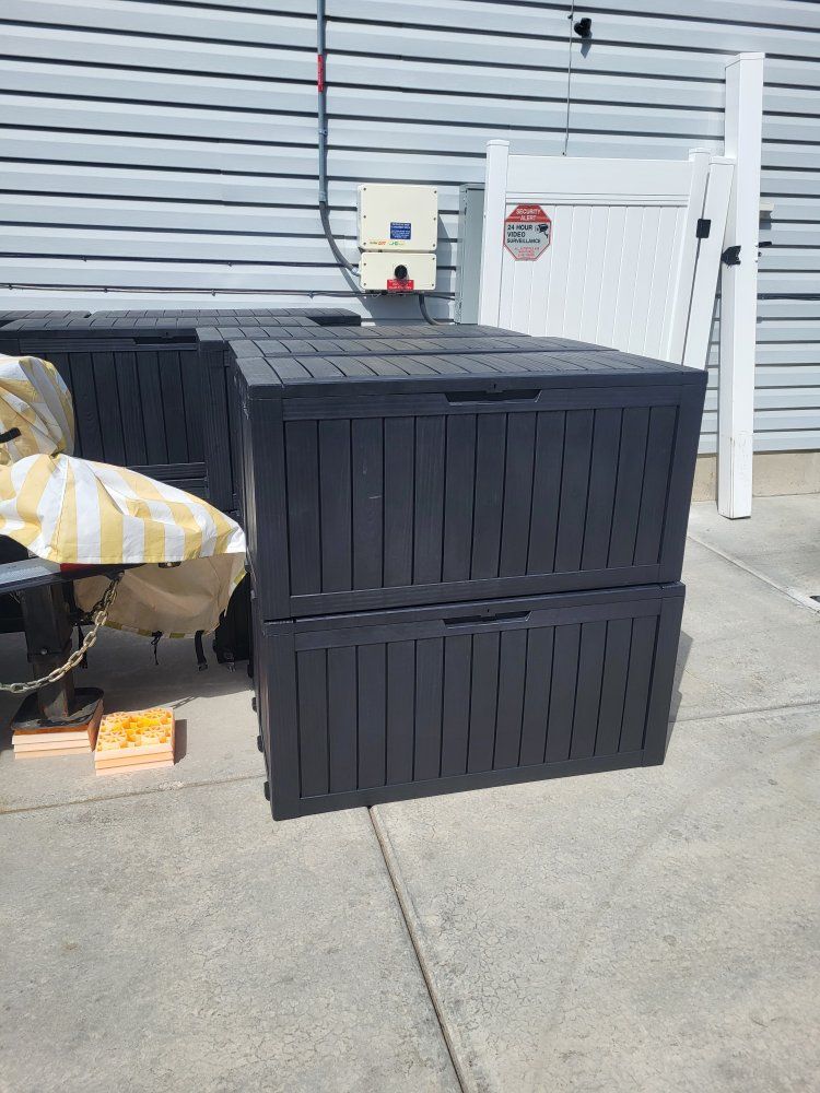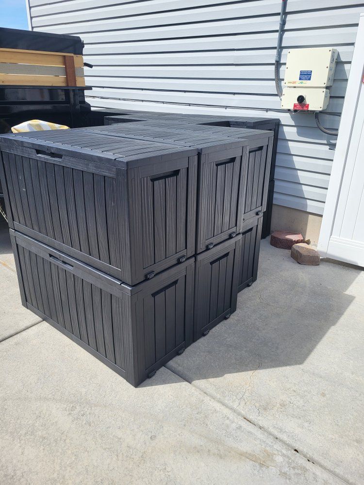 Keter* Qty-10 75gal Outdoor Storage Deck **Boxes w/Wheels *** Black All Weather Resistant UV Protected Lockable 46"L x 18"W x 24"H Brand New & Assembled ***