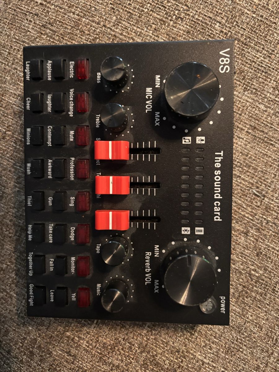 Nice V8S sound card mini mixer board , used but Looks and works good. Comes as shown in photos! Not perfect, scuffed and scratched a bit! don’t pay retail prices, call Dustin instead at 801-205-3404, I need it gone!