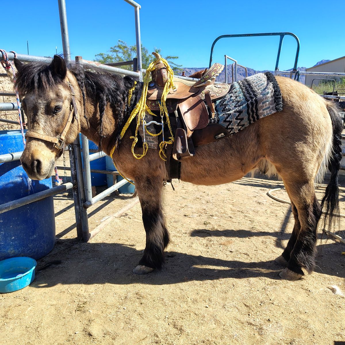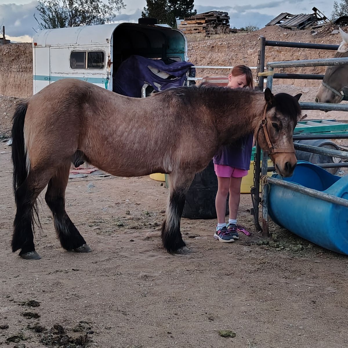 Check out this handsome fella. He is the perfect babysitter pony. Said to be 15yrs old and about 12 1/2hh tall. He has been used for trails mountains and moving cattle. He is a handy little dude. Been ridden by all ages and riding levels. Crosses water logs rides in tall brush. Rides alone or with others. Has done leadline and does great. Perfect little play day pony for someone learning. Currently ridden by a 7 yr old little girl. And the great thing about him is he is big enough for a small adult to keep tuned up for the kiddos.