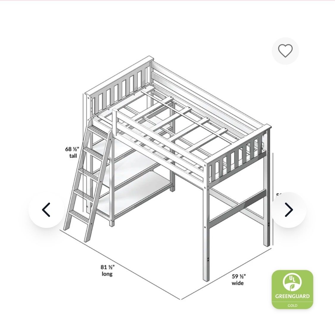 VenmoGreat condition Max and Lily twin loft bed. Barely used. Has built-in bookcase and ladder. Measurements are 68.5 inches tall, 81.5 inches long, 59.5 inches wide. This model is on sale new for $449 on the website. From a smoke-free, pet-free home.