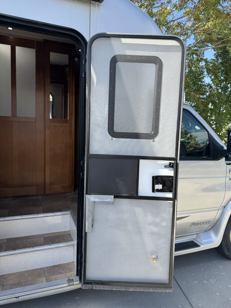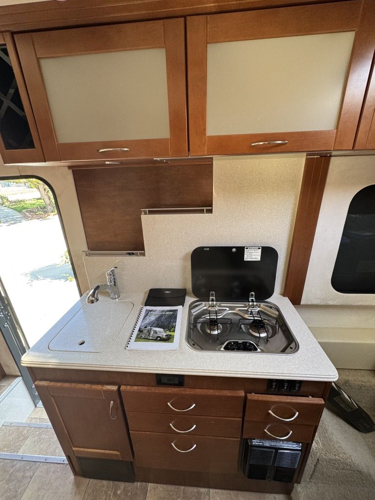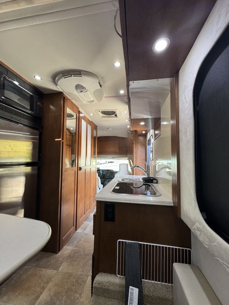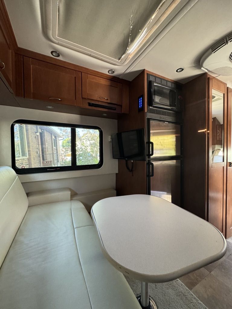 This deluxe little motorhome is is road trip ready. Built for national park cruising! So easy and fun to drive. Those fall colors won’t wait!! Luxury class B+ camper van motorhome with full-sized bathroom with huge shower, leather seats and couch that converts to a jack-knife bed at the press of a button. Premium Corian countertops and backsplashes, 2-burner stove, full-sized RV fridge, TV, sky light and power window shades plus a power awning! Mega storage. Deeeeeluxe! 78000 miles 4000 watt onboard Onan generator 15000 btu air conditioner V10 6.8L Ford E350 with 5000 lb. towing capacity. Spare Tire Solid roof. 22 feet long Don’t miss this one!