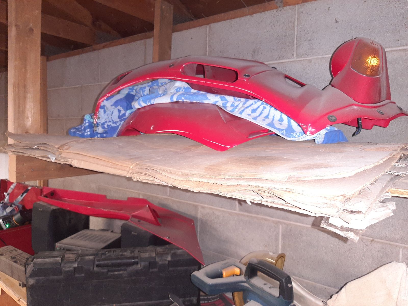 All the fairings are there and a spare fuel tank, two seats - the original and a Corbin.