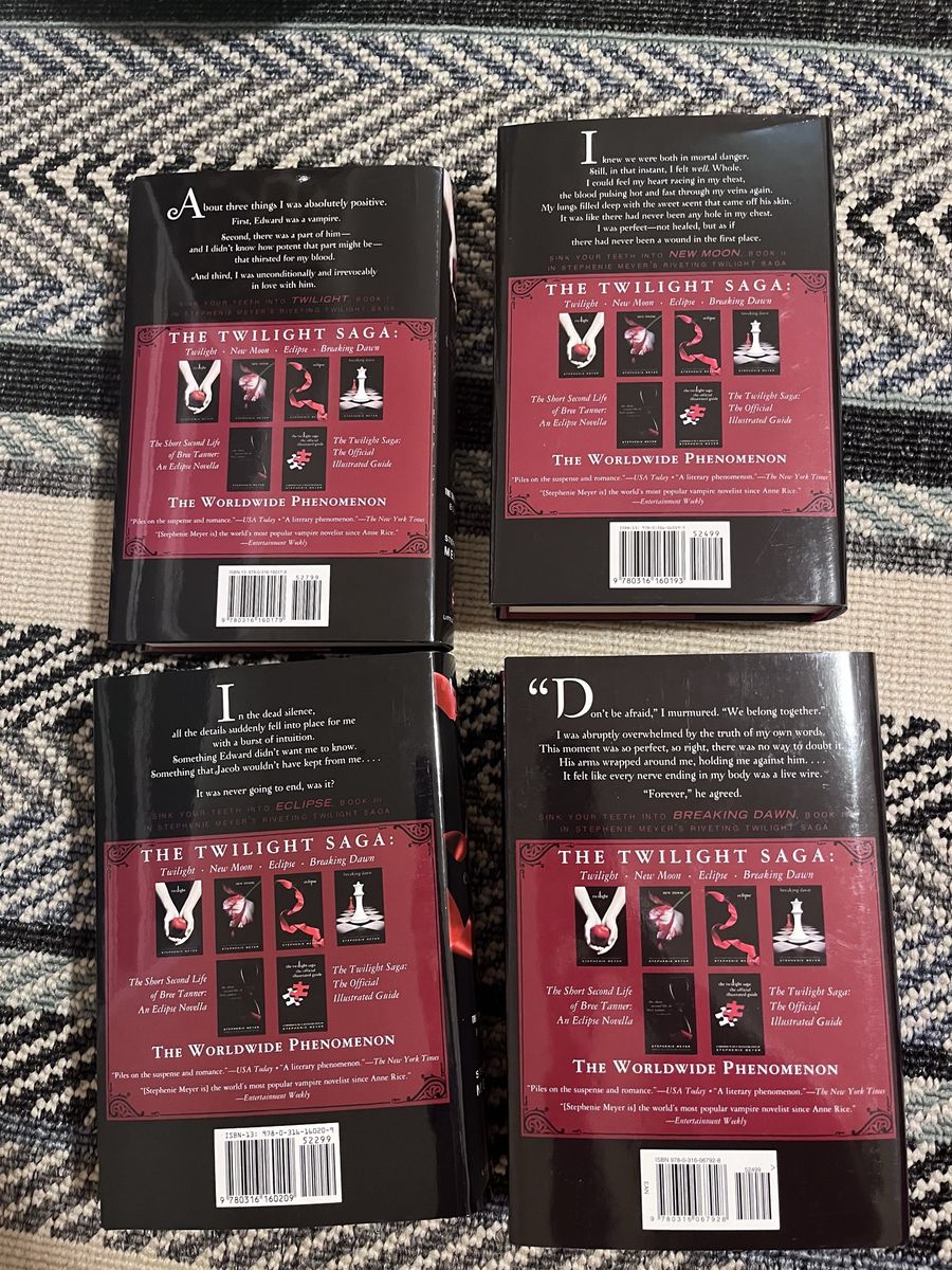 VenmoBrand New hard cover Twilight series. I read ebooks of all of these and decided to buy the hardcovers and ended up not wanting to read them again. I am moving and thought that now is a good time to sell. All books are brand new never been read no page creases or folds. Price is for the whole collection including the two books that technically aren't part of the original series. If you are wanting to just get the original series i'd be willing to split them up.