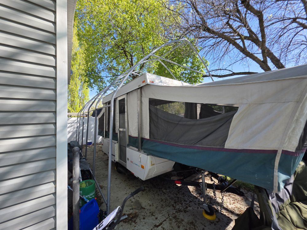 VenmoClean Fleetwood pop-up camper. Easy to set up and pack down. Has plenty of space inside for sleeping and hanging out. Great for family trips or weekend getaways. Sleeps 5 comfortably, easy to set up with one person in 10 minutes. Includes 2 20lb propane tanks (only refilled once). Also included tire leveling kit, wheel chocks, and drill attachment for the crank. Floor, cabinets and countertops refinished by previous owners. We have used for ~10 nights in the last year and love this thing. We're moving and so need to part ways sadly. It has water and electricity hookups (we never used) as well as a propane heater and stove(both work great)